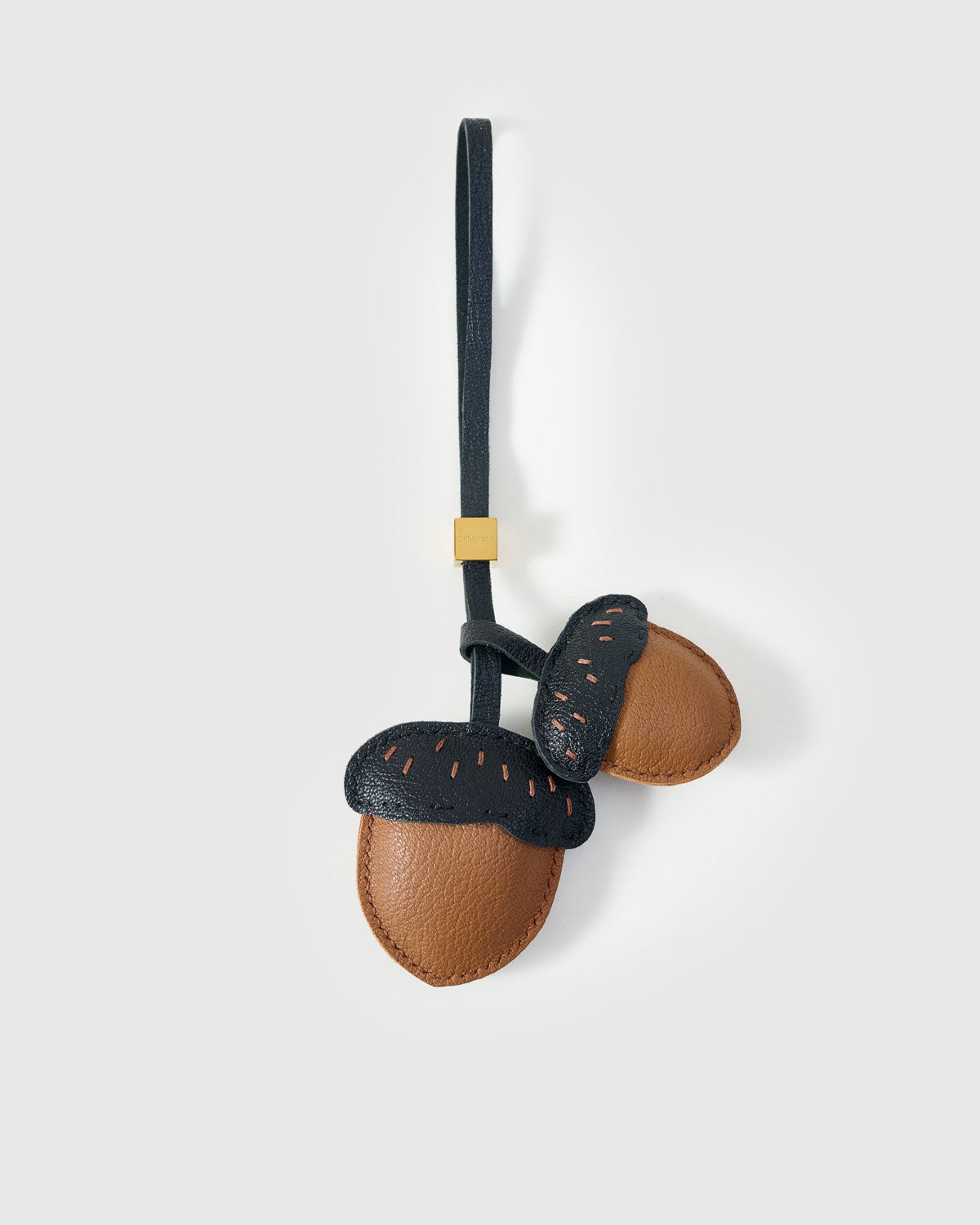Each charm is meticulously handmade from premium brown and black leather, with a soft rounded form that feels organic and tactile. The double-acorn design symbolizes harmony and potential, making it a thoughtful gift or keepsake for yourself.