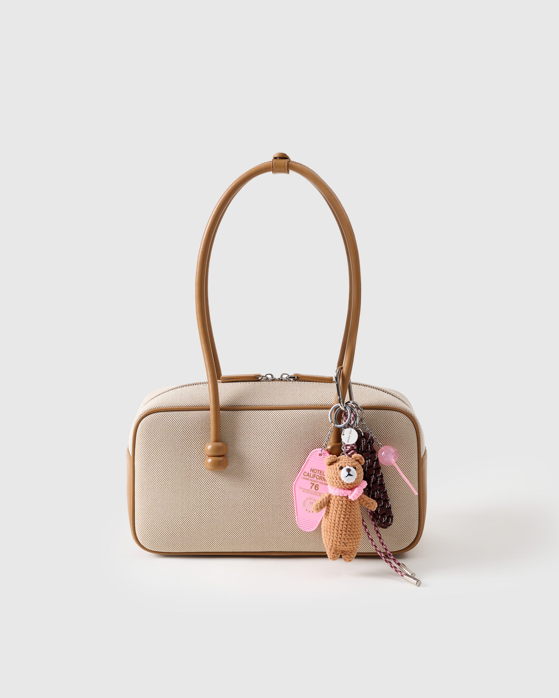 There’s a quiet rebel in BEBE—the kind who sends love notes in the shape of a lollipop and checks into “Hotel California” just to daydream in pink. Handcrafted with a soft brown yarn body and dressed in a fluffy pink scarf, BEBE is that one friend who’s unbothered, poetic, and secretly very organized. She’s flanked by double artisan ropes—one blush-pink paracord twist and one heavy-duty brown braid—and accessorized with a shiny pink lollipop and motel tag from room 76. Sweet but not soft. Dramatic but polite. Completely, totally handmade.