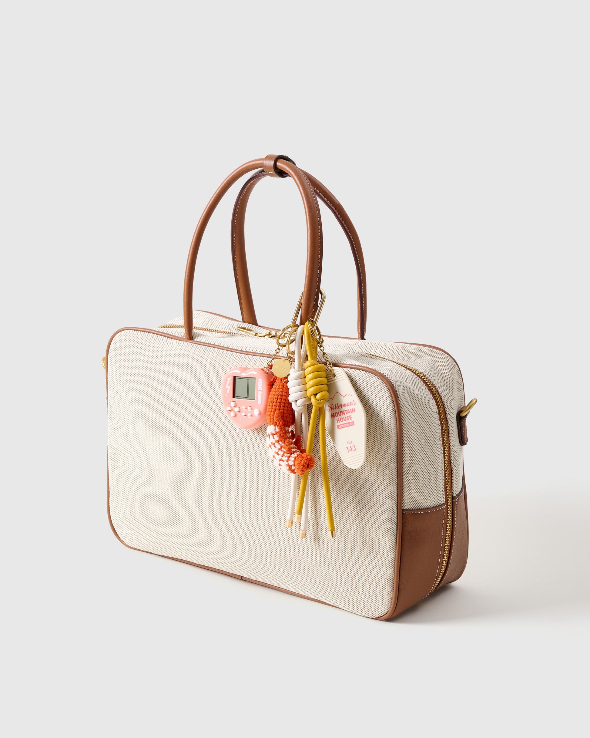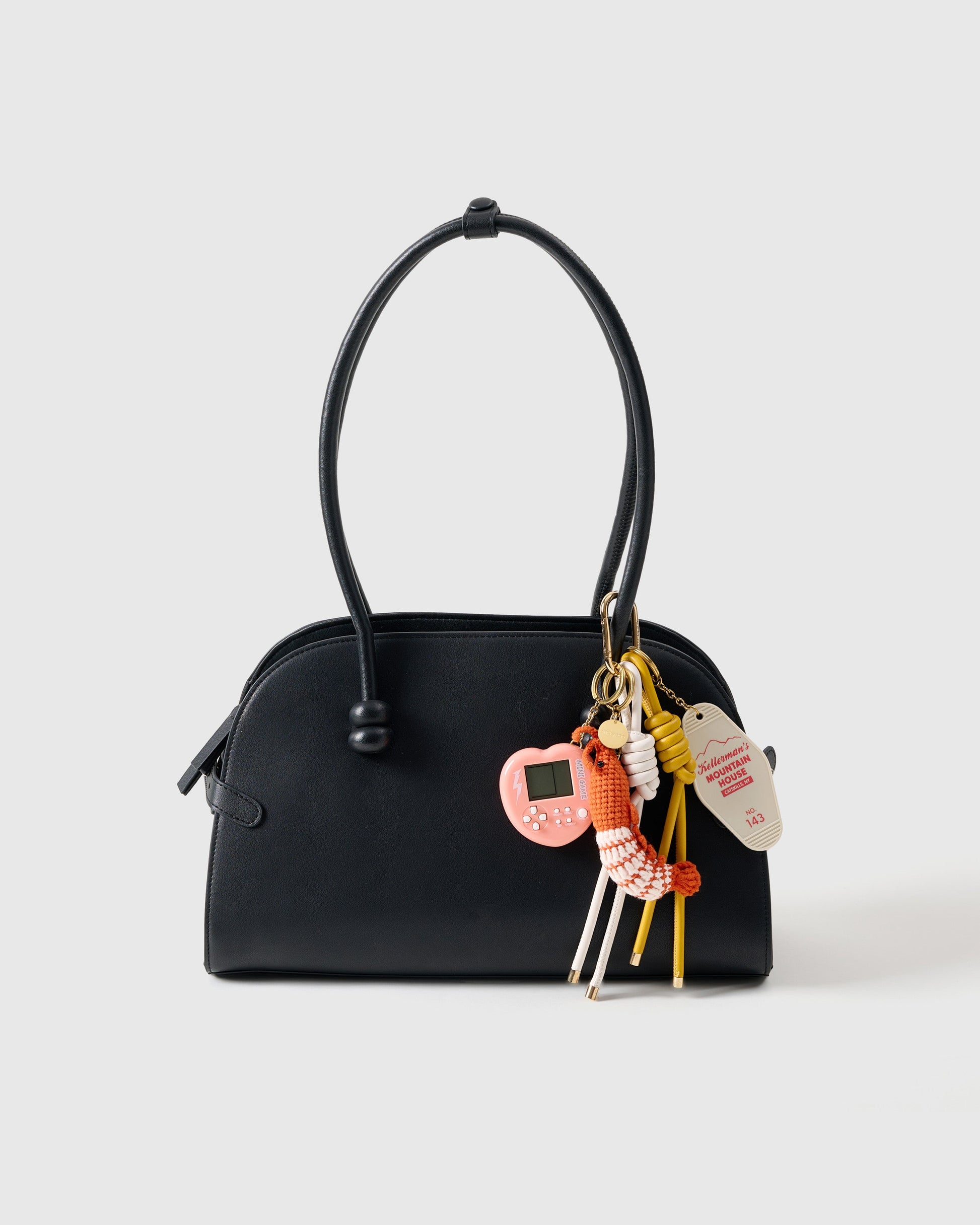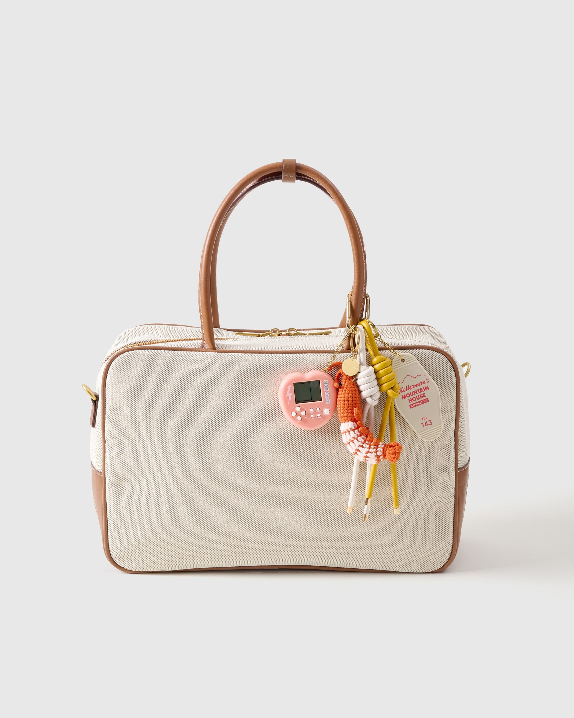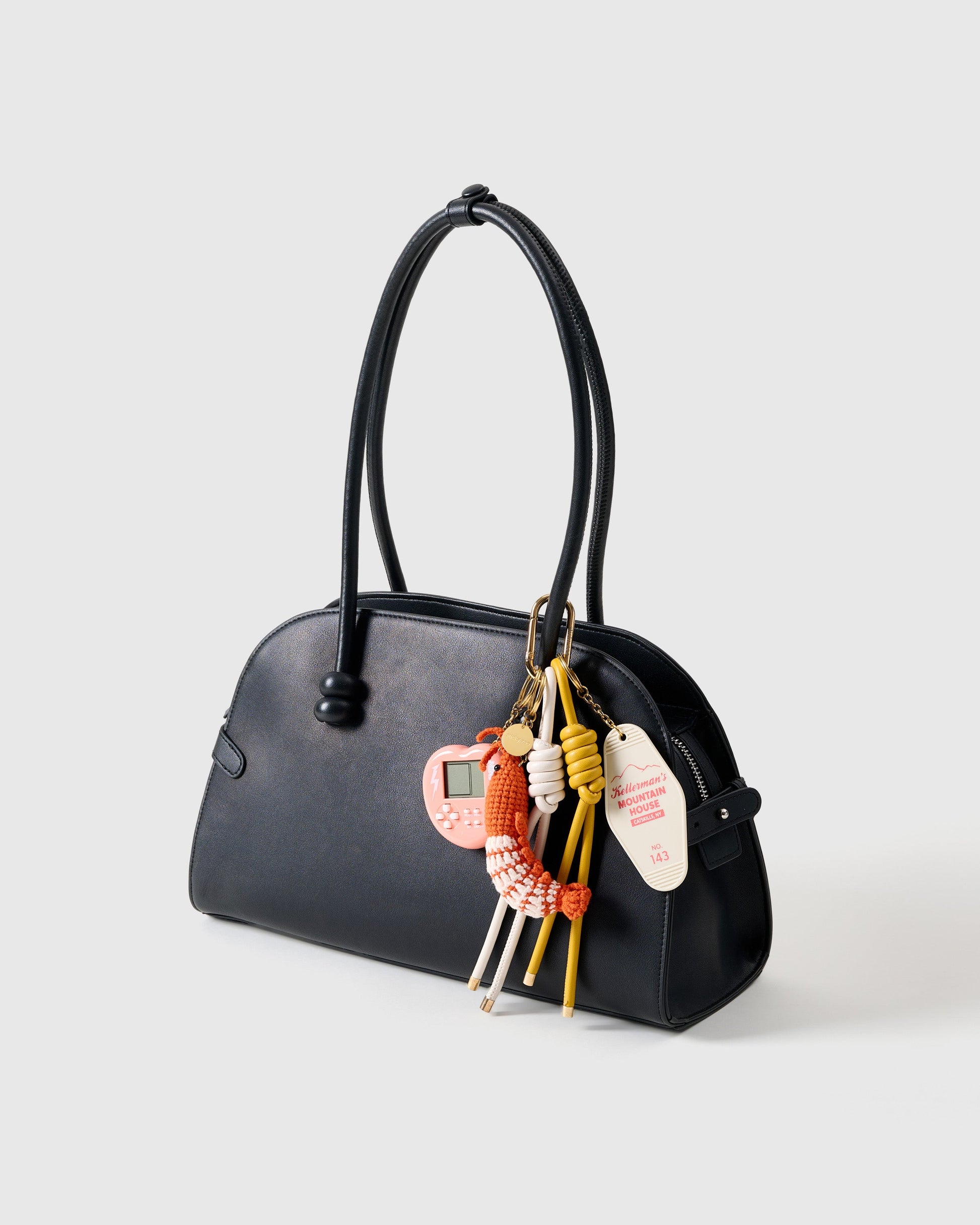 Shrimp doesn’t swim—he swerves. This handmade shrimp knows no rules and no chill. With his striped orange-and-white body, he’s here to outshine every charm on the tote. Retro vibes? Check. Arcade vibes? Double check. He brings game-night energy to everyday carry, complete with hand-tied leather ropes and a glittering gold hook. Who knew shrimp could flex this hard?