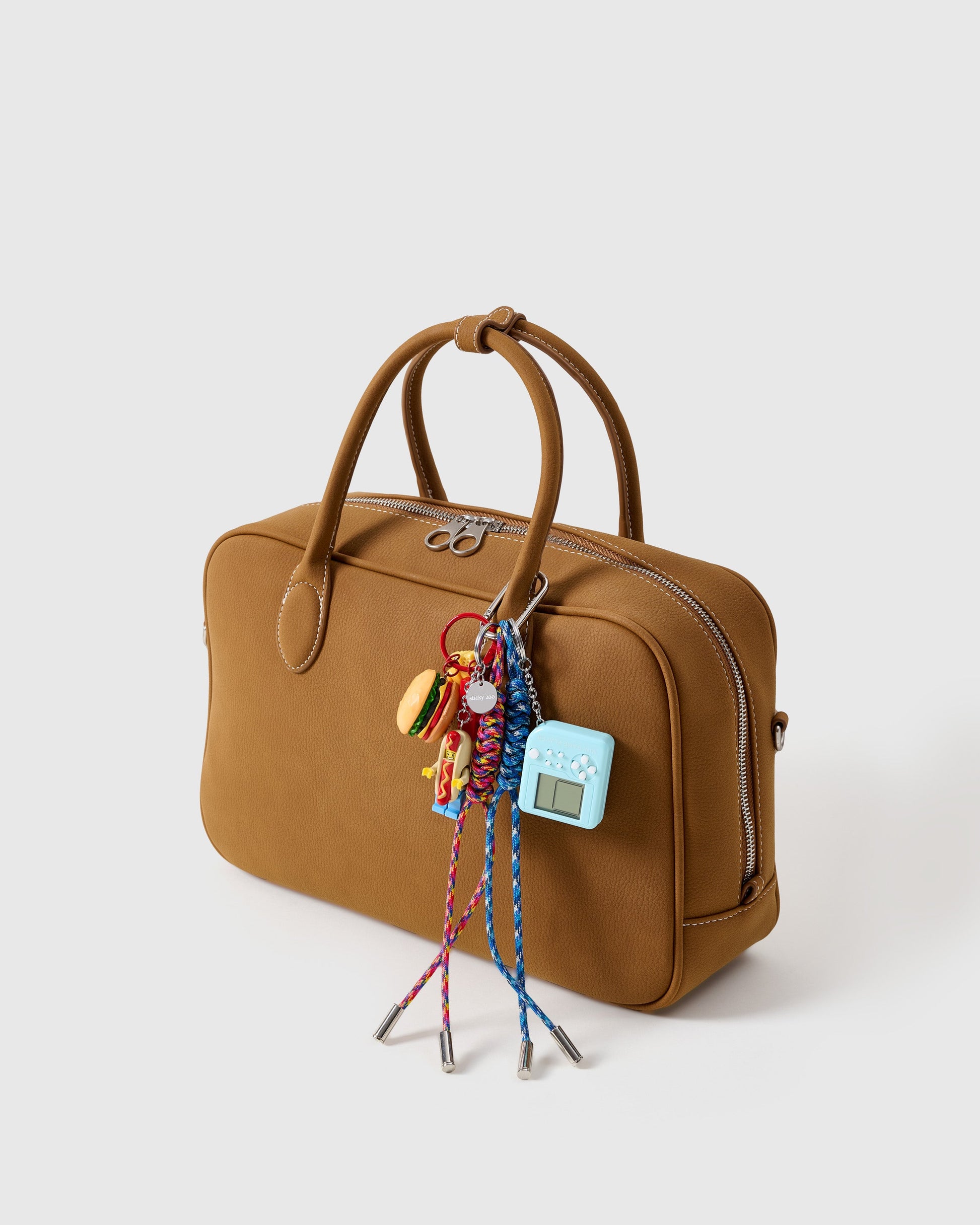 Packed with fast food icons, gaming nostalgia, and color-loaded rope knots, this charm is a full combo meal of personality. From the 3D burger and fries to the hotdog hero and mini sky-blue game console, every piece is a wink at snack culture and low-stakes rebellion. Wrapped with contrast paracord ropes in pixel-sweet blue and ketchup-mustard tones, it's ready to drop on any bag, any day.
