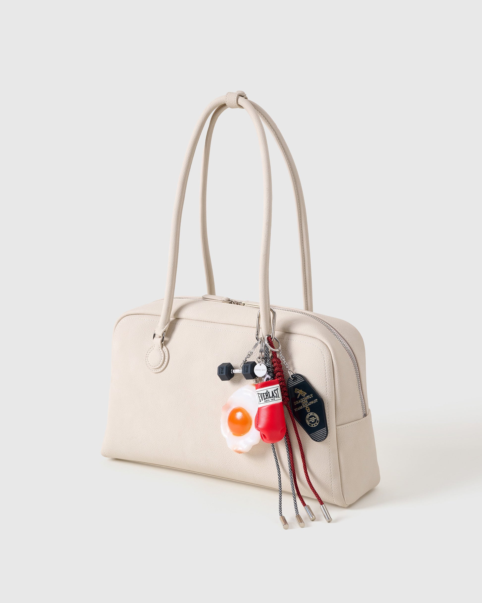 BOX & BOOST STACK CHARM is for the bold. For the ones who show up early, stay late, and know that a single rep can shift your whole mindset. The charm features a bright red boxing glove, a mini 5KG dumbbell, a sunny-side-up egg for a wink of energy, and paracord/leather ropes in black and red. It’s all clipped together with a signature Sticky Zoo® clasp and custom tag—because gym icons deserve gear with character.