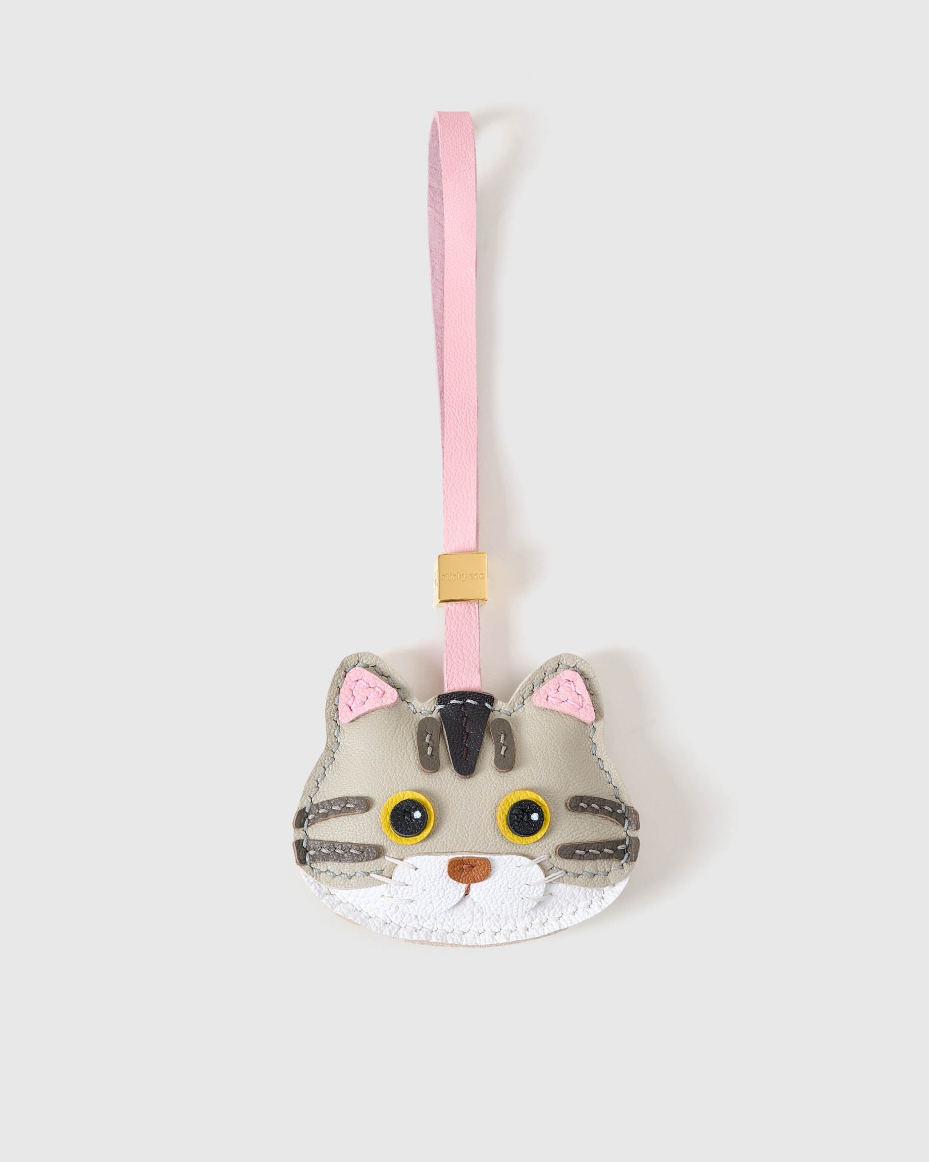 The BRITISH SHORTHAIR CAT CHARM is an ode to plush perfection. Hand-cut and stitched from soft French leather, this tabby-faced charm captures the calm, curious personality of the beloved British Shorthair breed. Its wide golden eyes, stitched whiskers, and soft velvet muzzle add dimension, while a pastel pink leather strap wraps it up in sweetness.
