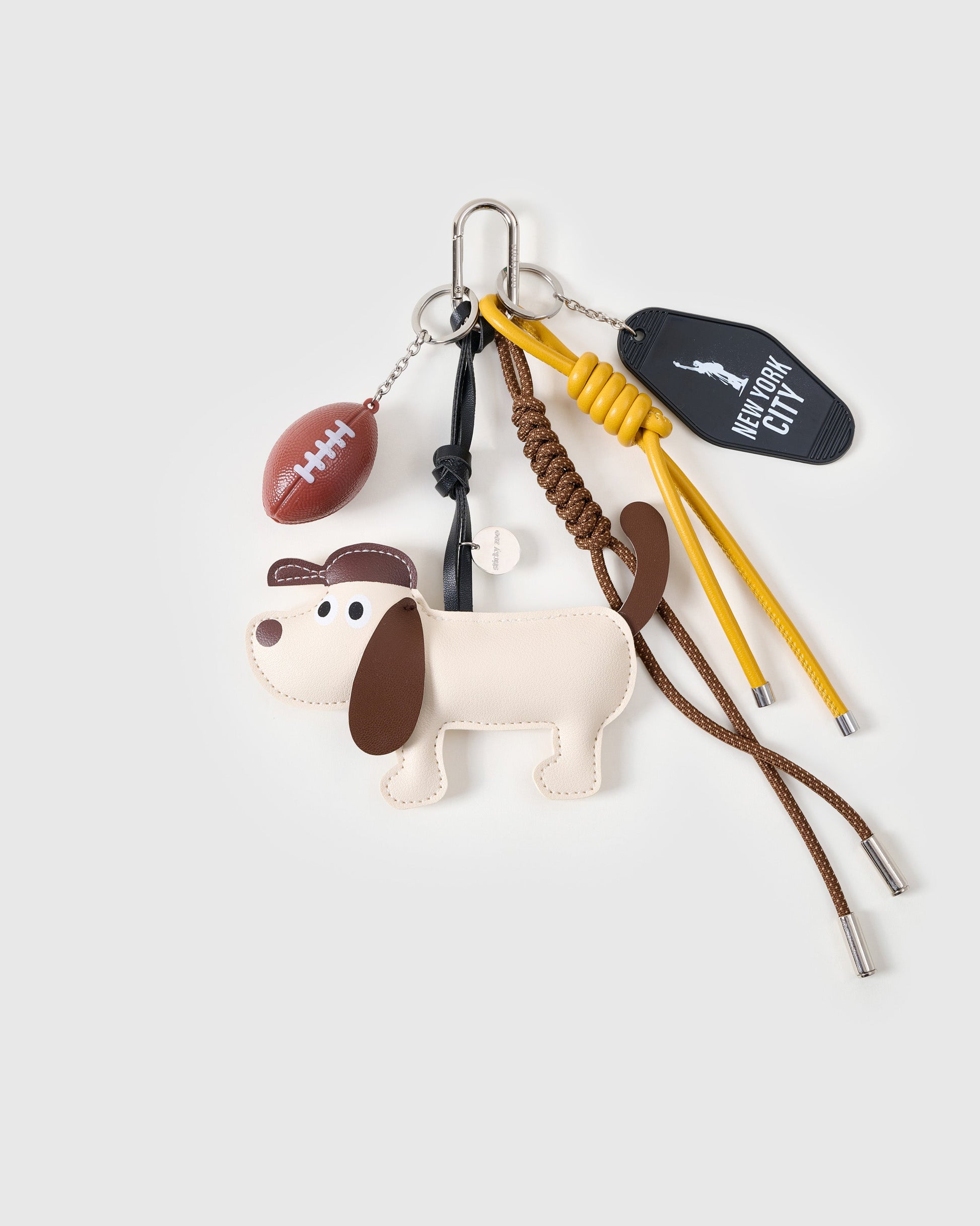 The CAPSTER STACK CHARM celebrates all things sporty and sweet. Featuring a floppy-eared dog in a stitched cap with a mini football, NYC-inspired charm tag, and signature Sticky Zoo® flair, it's a mini mascot made for your everyday carry.