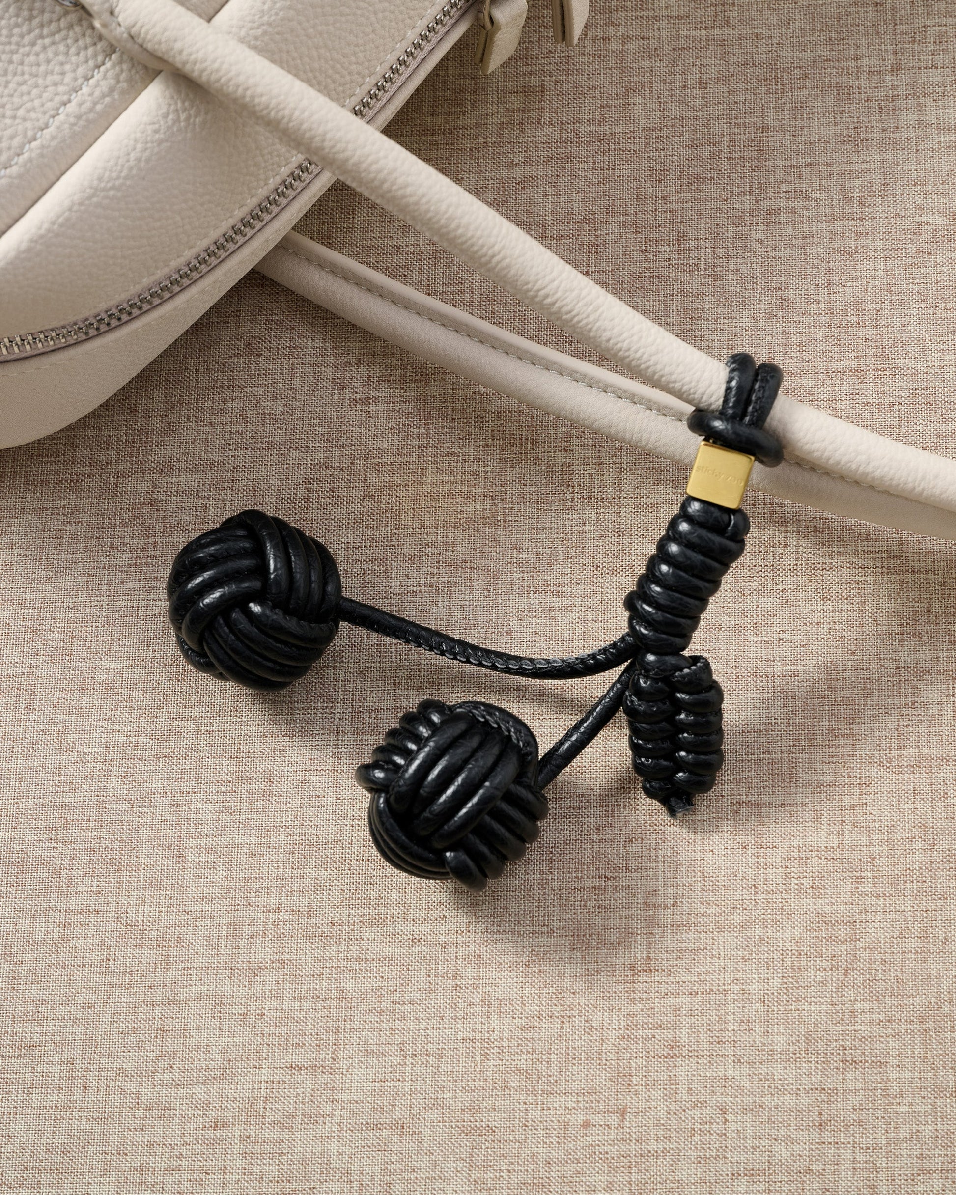 The CHERRY BLOOM CHARM from STICKY ZOO® pairs French Alran leather with intricate knotted craftsmanship for a striking silhouette. Available in Red, Black, Silver, Dark Brown, and White, this charm shifts seamlessly from bag charm to keychain, adding a fresh accent to totes, handbags, or keys.