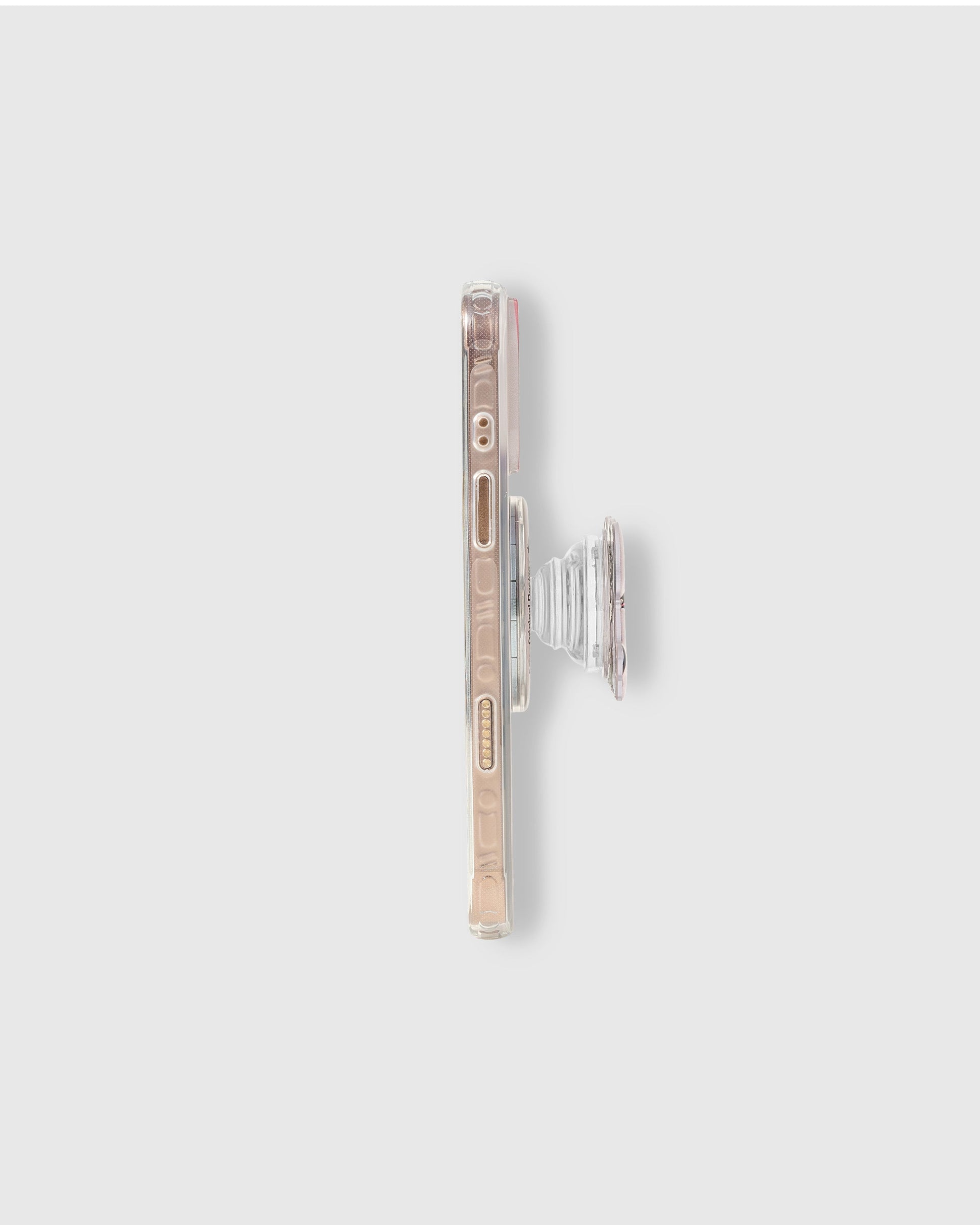 Designed with a pastel pink rim for the camera cutout and flexible transparent edges for everyday protection. Yes, it’s MagSafe-compatible. And yes, you can turn it charm-ready with a Strap Card (sold separately).