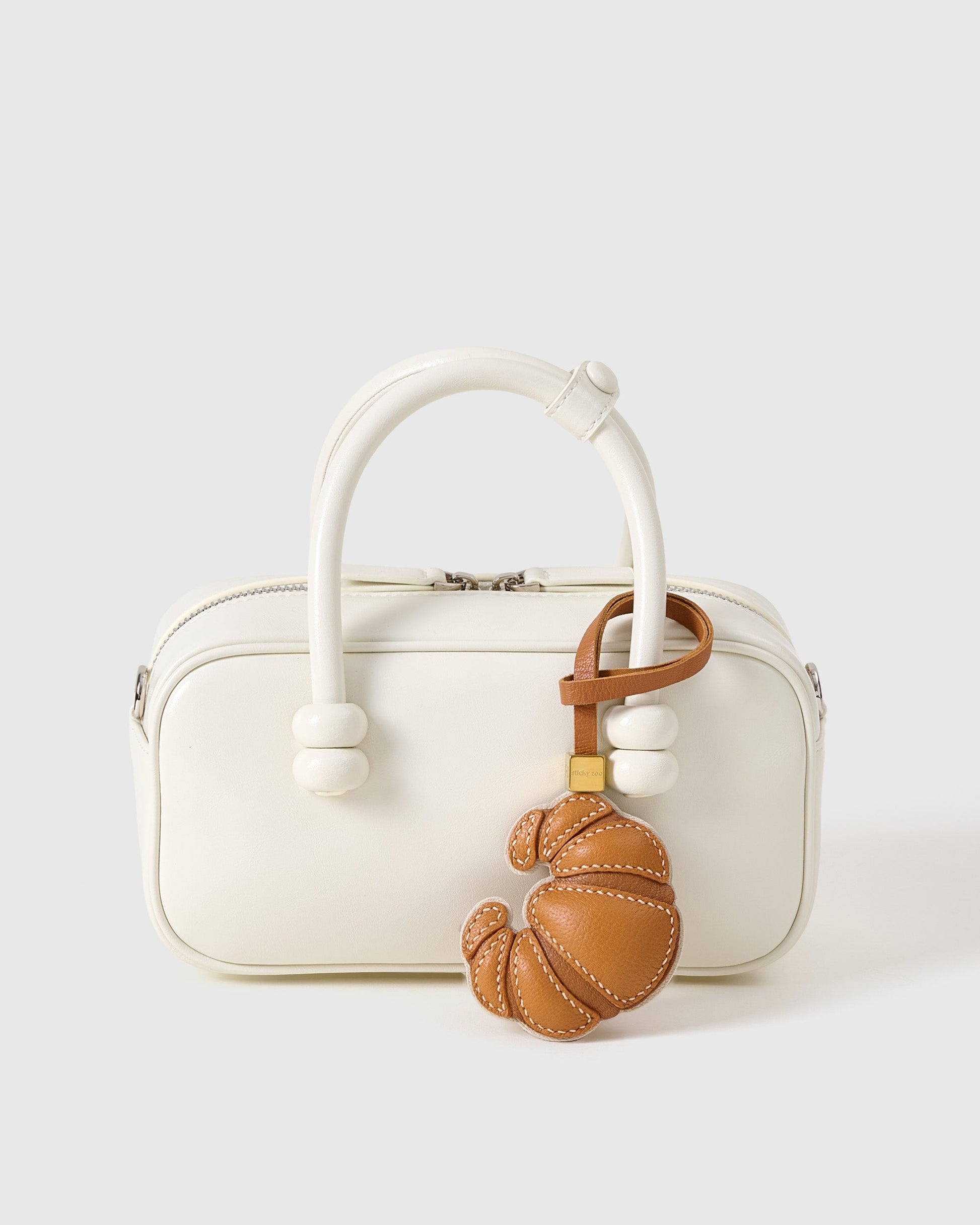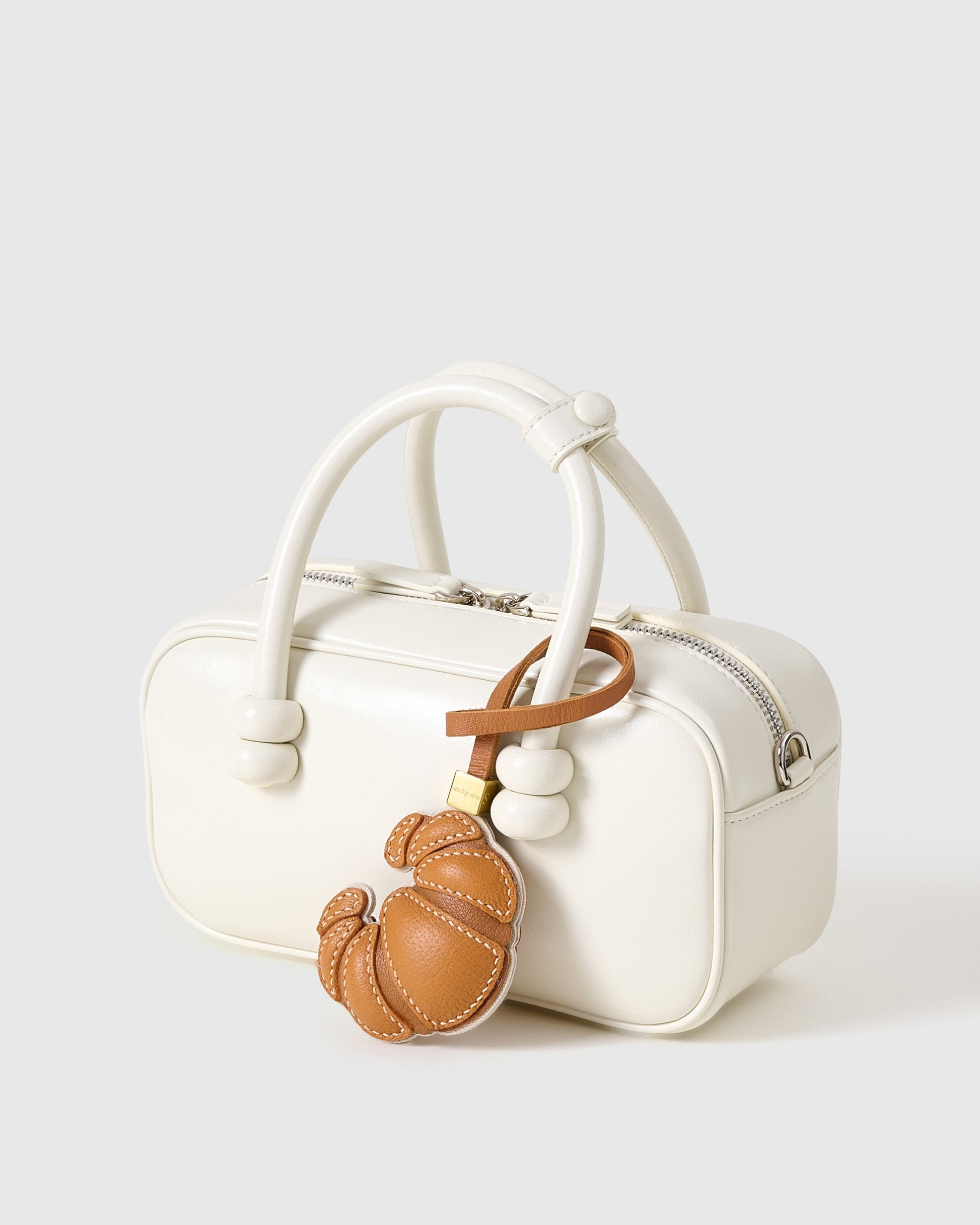 The CROISSANT CHARM from STICKY ZOO® is a love letter to Paris—crafted in French Alran leather and shaped to perfection with hand-painted edges. Available in black, brown, and suede brown, it’s designed to move effortlessly from bag charm to keychain, adding a dash of French chic wherever it goes.