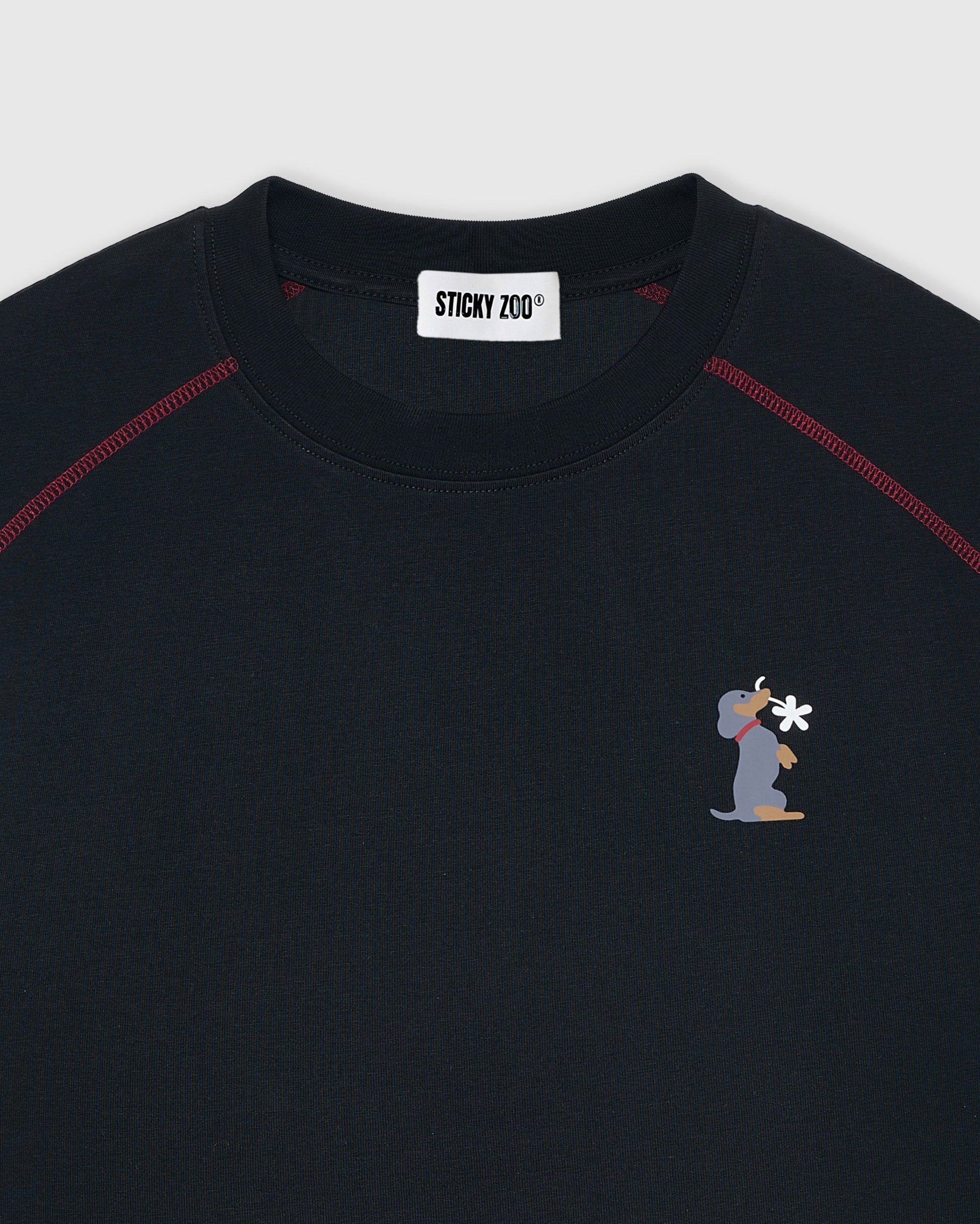 Craftsmanship Chest embroidery: dachshund with flower; contrast ringer trims