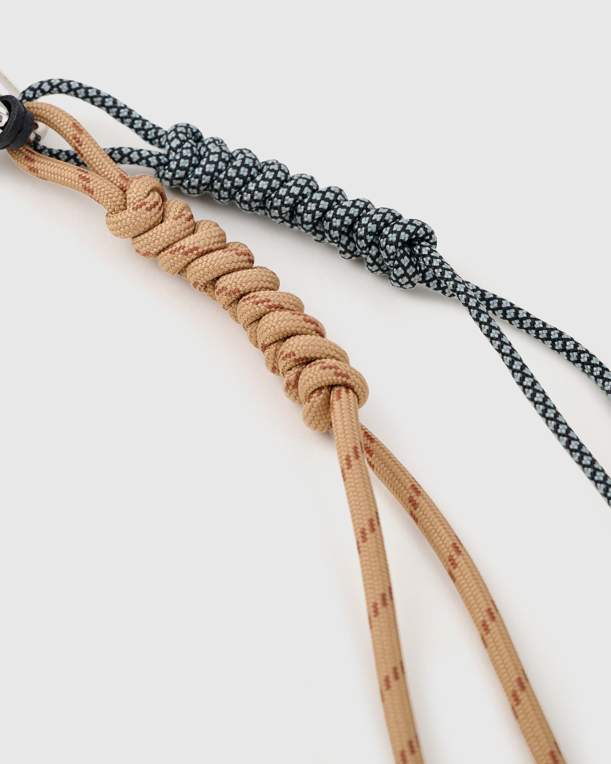 | Materials | Faux leather, resin dice, rubber charm, nylon paracord ropes |