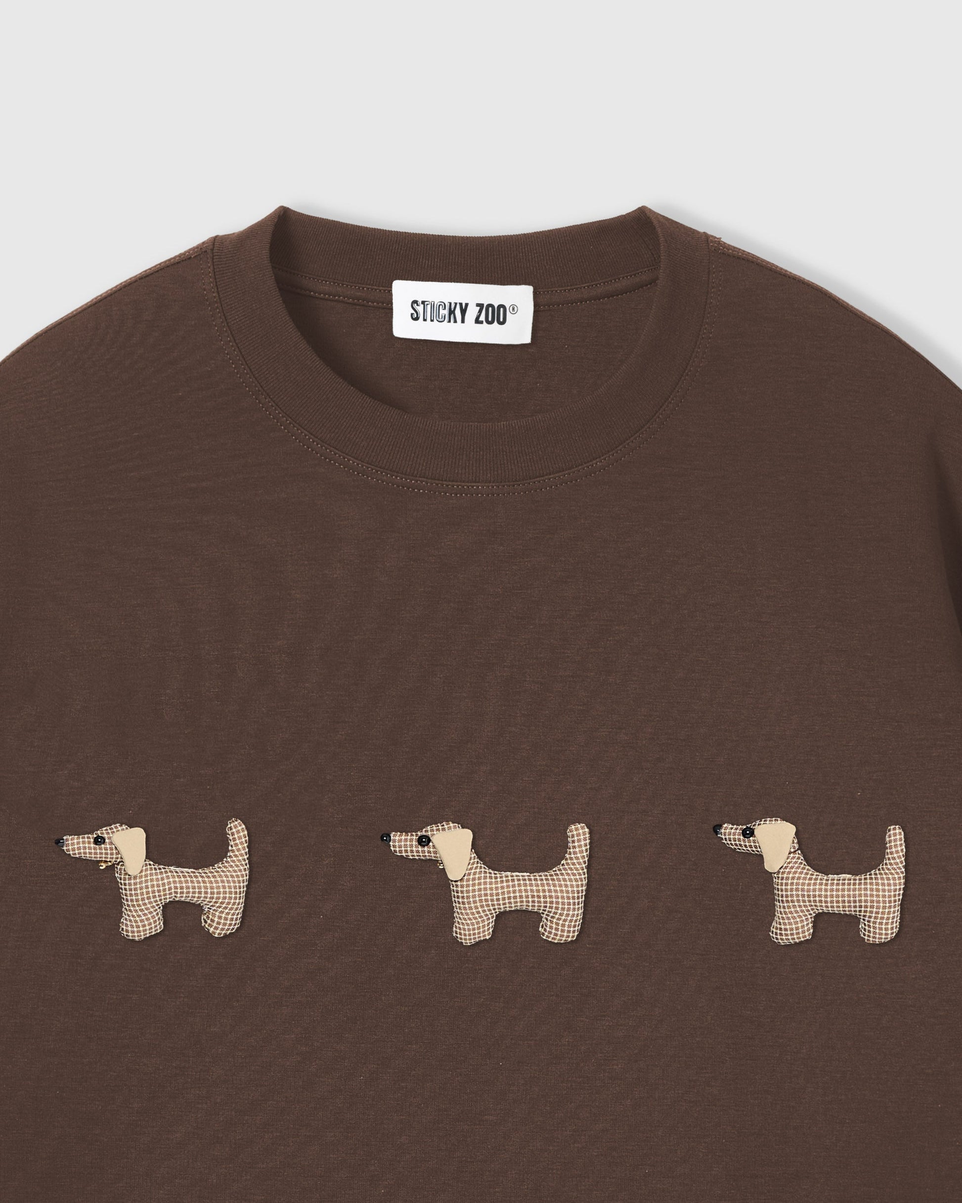 The DACHSHUND TRIO T-SHIRT by Sticky Zoo® is pure wearable joy. Crafted from luxurious 230gsm cool-touch cotton, it's designed for effortless comfort on warm days. Featuring three meticulously hand-sewn Dachshunds across the chest, each shirt feels uniquely personal—like a friendly greeting you wear wherever you go.