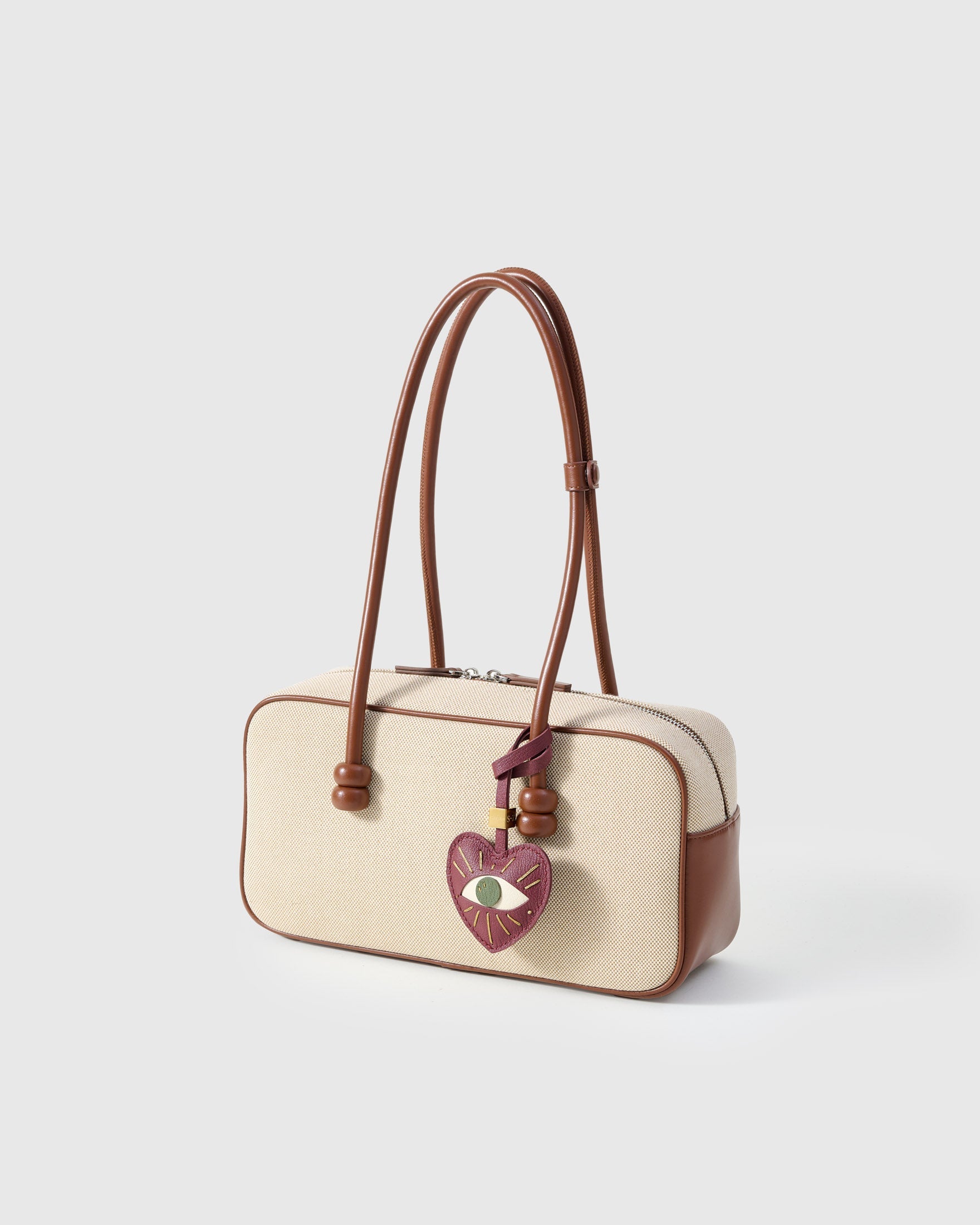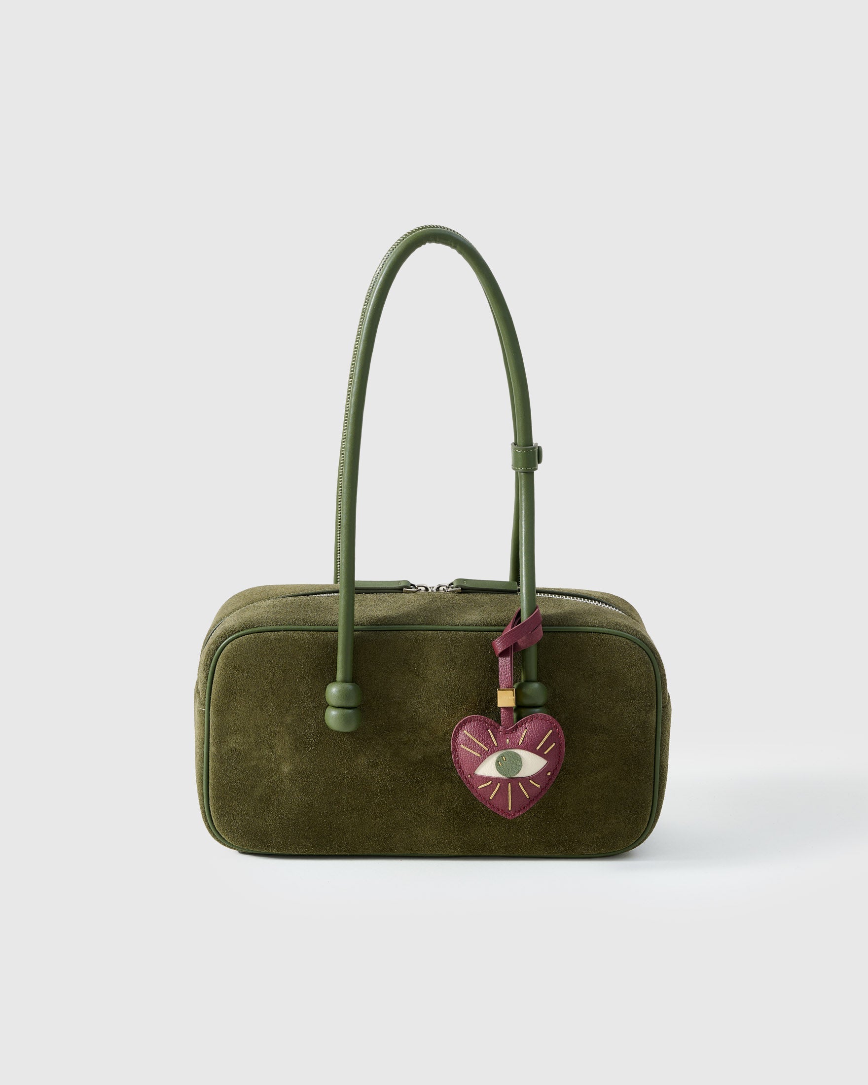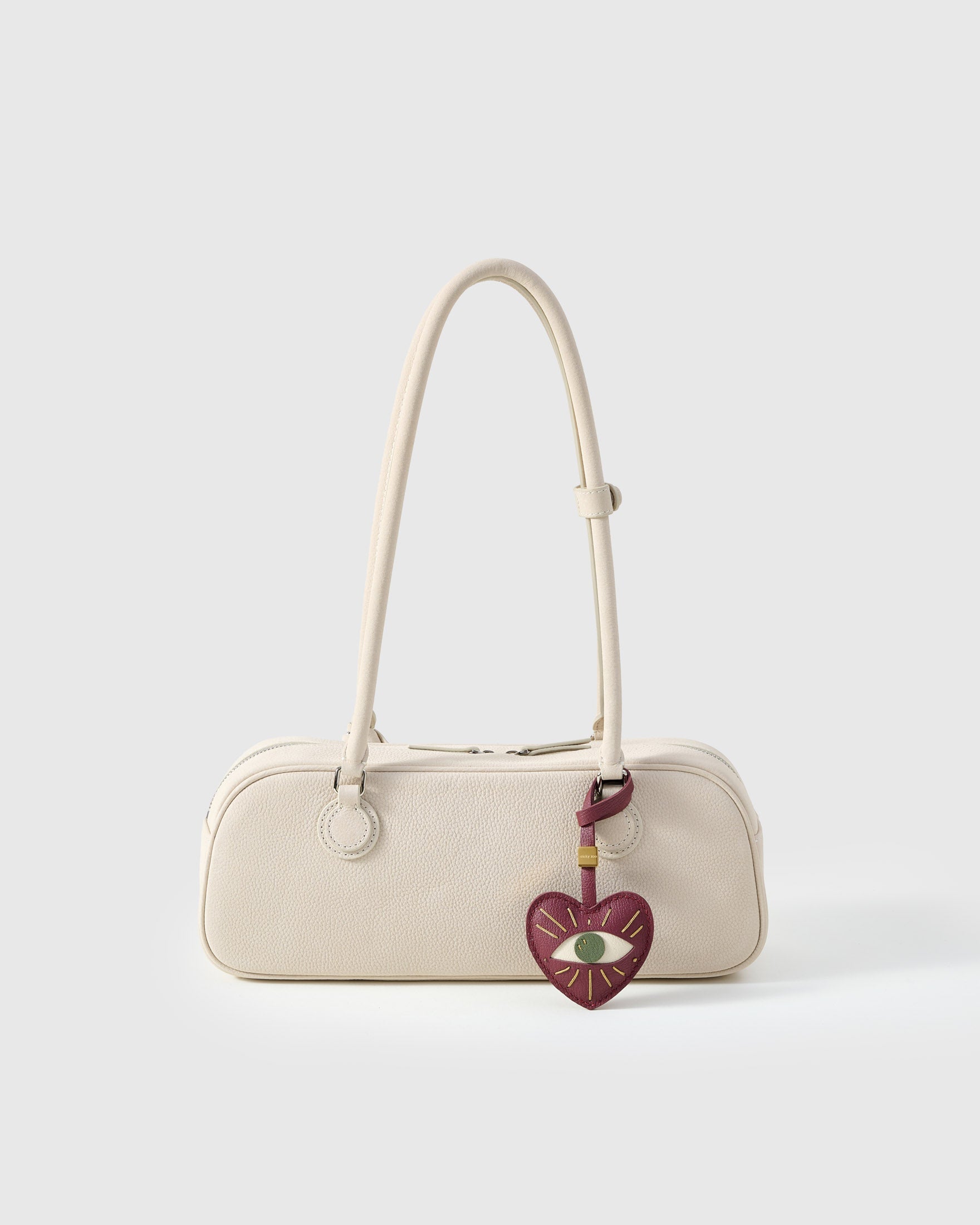 The EVIL EYE HEART TALISMAN CHARM from Sticky Zoo® reimagines an ancient symbol as a modern, collectible detail. Softly padded French Alran leather forms a deep-berry heart with an inlaid eye and sunburst rays; 18K gold hardware adds a protective glow. It’s a pocket-size piece of intention—made to travel with you and keep the energy sweet.