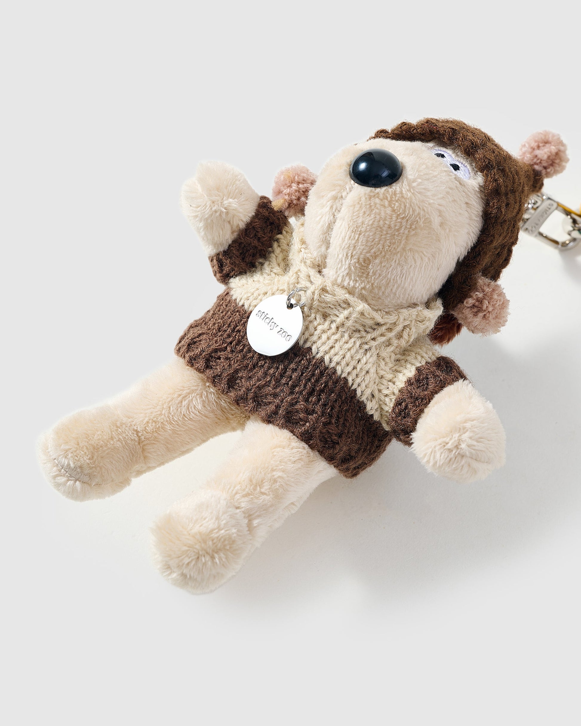 | Materials | Plush puppy; knit sweater; mini glove–bat–ball charms; rope cords; stainless-steel hardware |