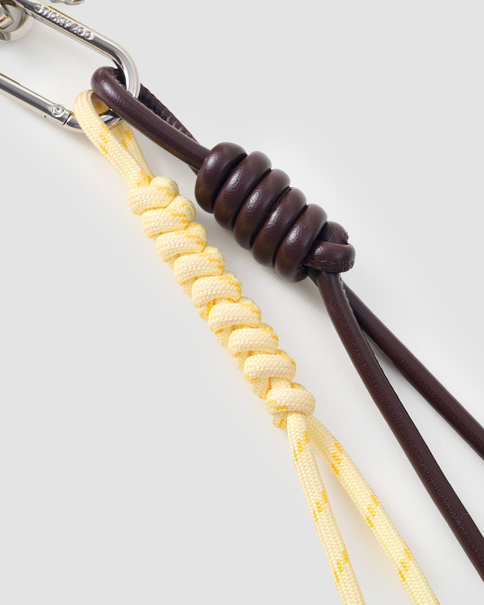 The GOLF PUP SMILEY STACK CHARM from Sticky Zoo® blends small-batch craft with playful utility. Hand-assembled with a soft plush puppy mascot, a mini golf club & ball charm, a smiley bead bracelet, espresso French Alran leather ropes, and lemon braided cords—secured by a Polished stainless steel clip engraved with Sticky Zoo® logo. Layer it on handbags, keys, camera straps, and weekender totes.