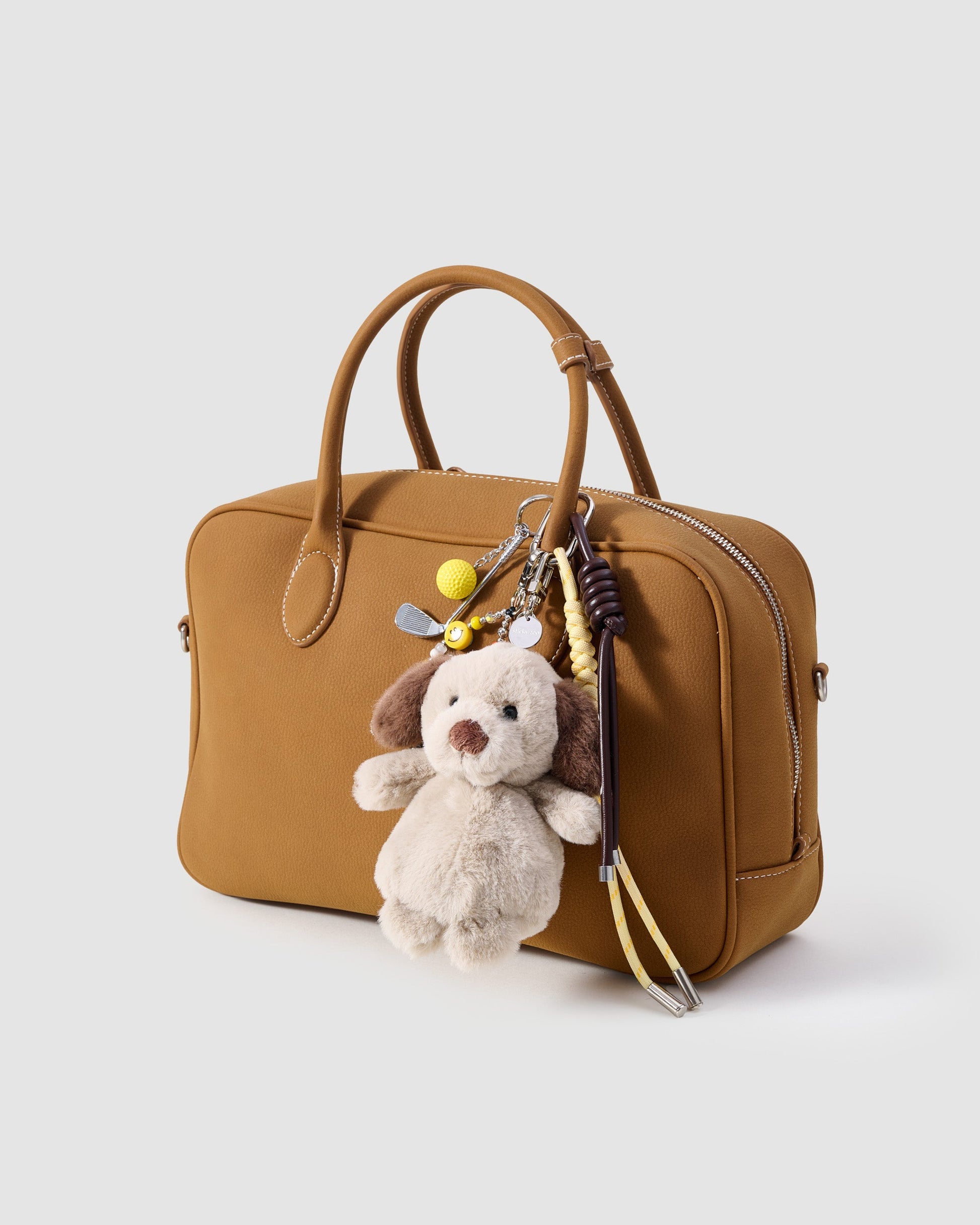 Good mood, clipped. A plush little pup, smiley beads, and a tiny golf set turn any carry into a happy, daily conversation starter.