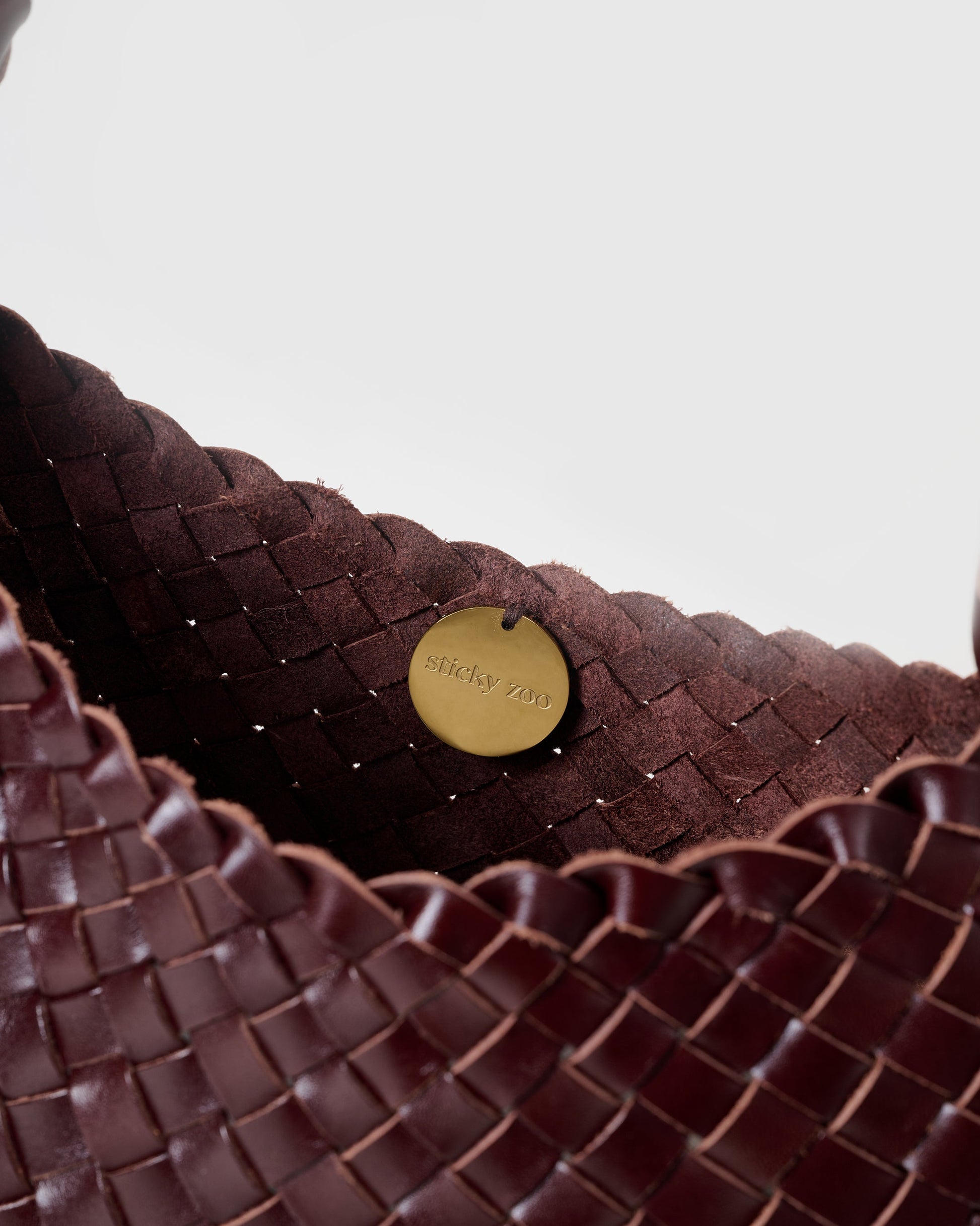 The Braided Genuine Leather Triangle Shoulder Bag showcases superior craftsmanship through its luxurious handwoven leather pattern. Its unique triangle silhouette and refined woven details make it a statement piece, while the soft and spacious interior ensures practicality. An engraved Sticky Zoo® gold-tone charm adds a touch of subtle luxury, enhancing the bag’s exclusive appeal.