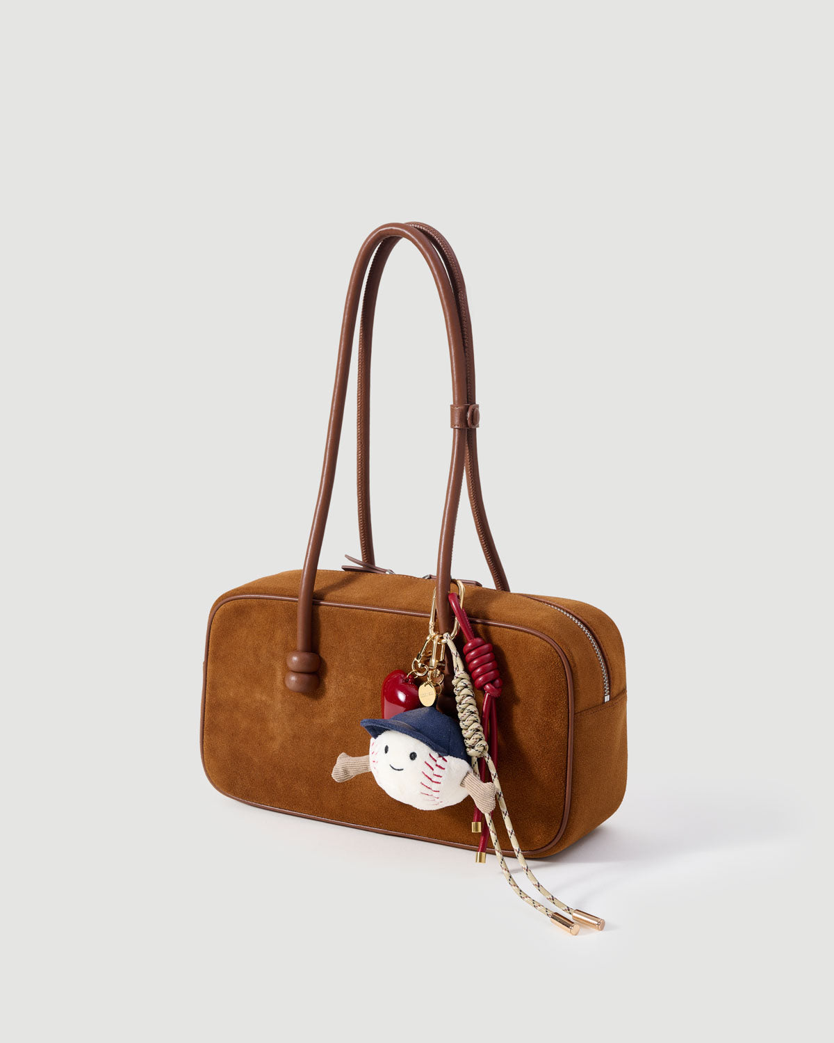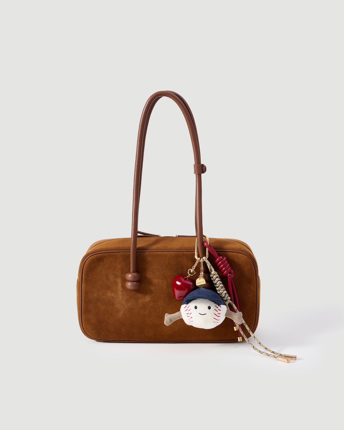 Play ball, stay cute. A smiling baseball, deep-red heart, and knotted cords bring sport nostalgia and collector polish to any bag.