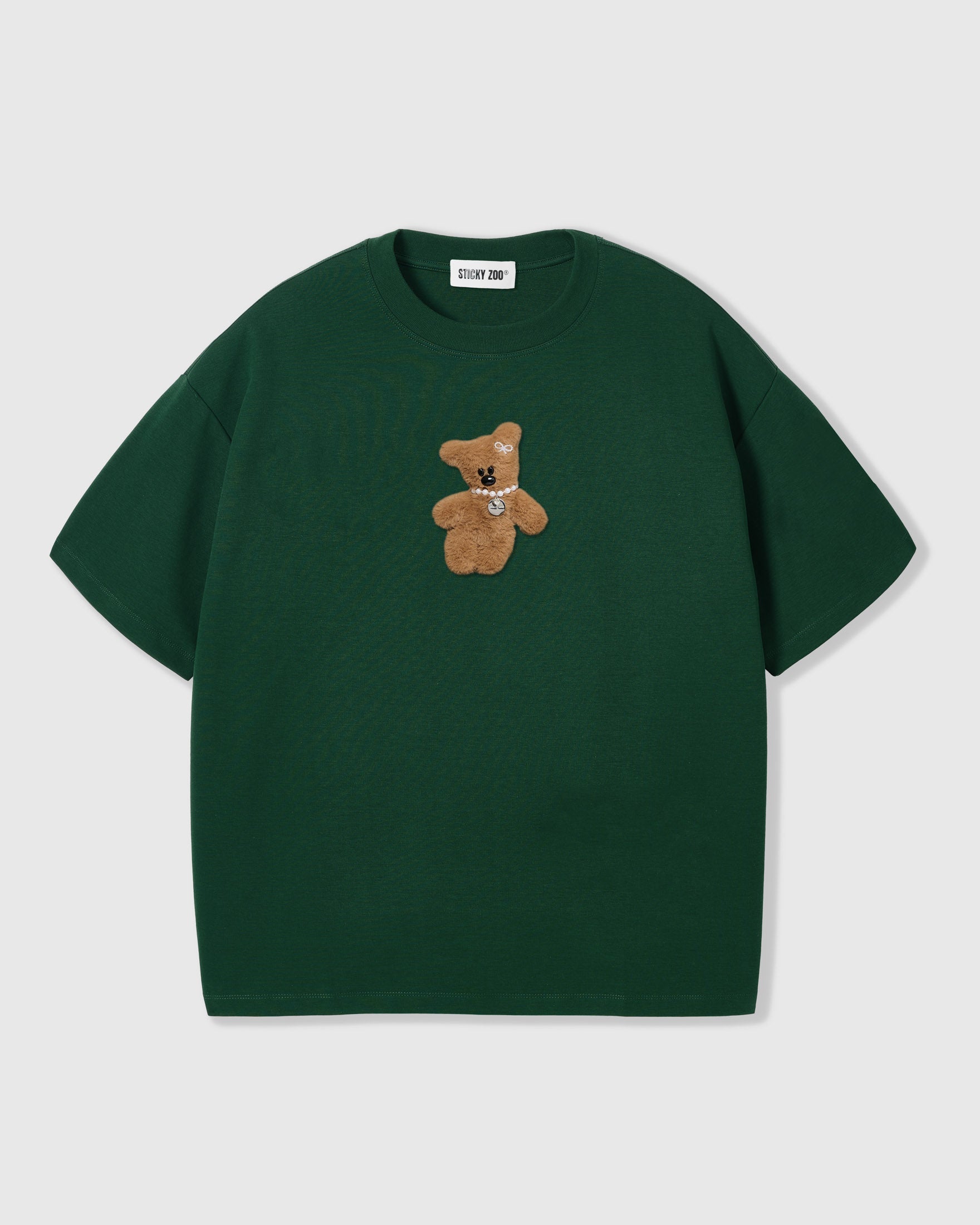 Sticky Zoo® HUG-ME BEAR TEE turns cozy nostalgia into something wearable. Featuring a hand-sewn plush bear with a pearl necklace and engraved logo tag, this piece blends emotion with ease. It’s the shirt you reach for when you need a hug, a breeze, or both.