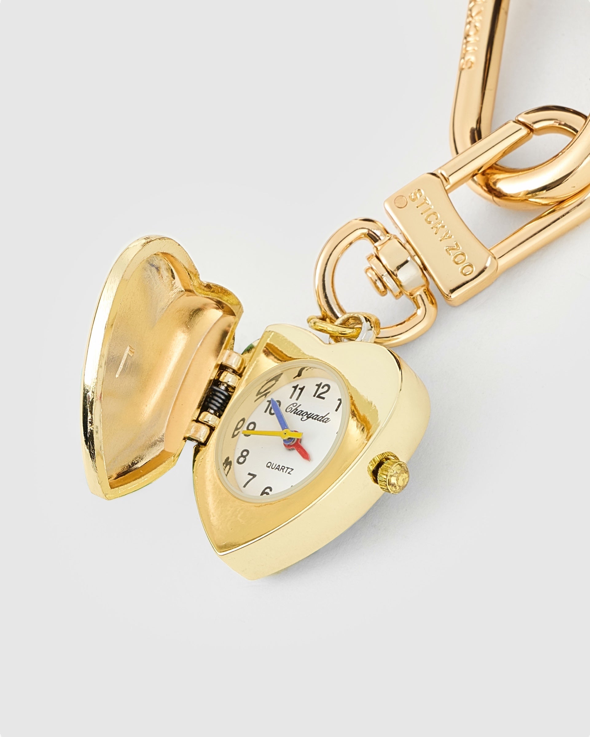 COWHIDE STAR STACK CHARM carries a quiet sophistication. Its centerpiece: a cowhide leather star stitched with natural precision and framed in structured tan leather. Nestled within, a secret heart-shaped locket watch peeks from beneath the stack. Contrasting leather knots in deep espresso and honeycomb deliver tactile elegance. It’s finished with a metallic pearl loop and signature Sticky Zoo® clasp in a gold finish. From slow craft to styled impact, every element feels purposeful—and personal.