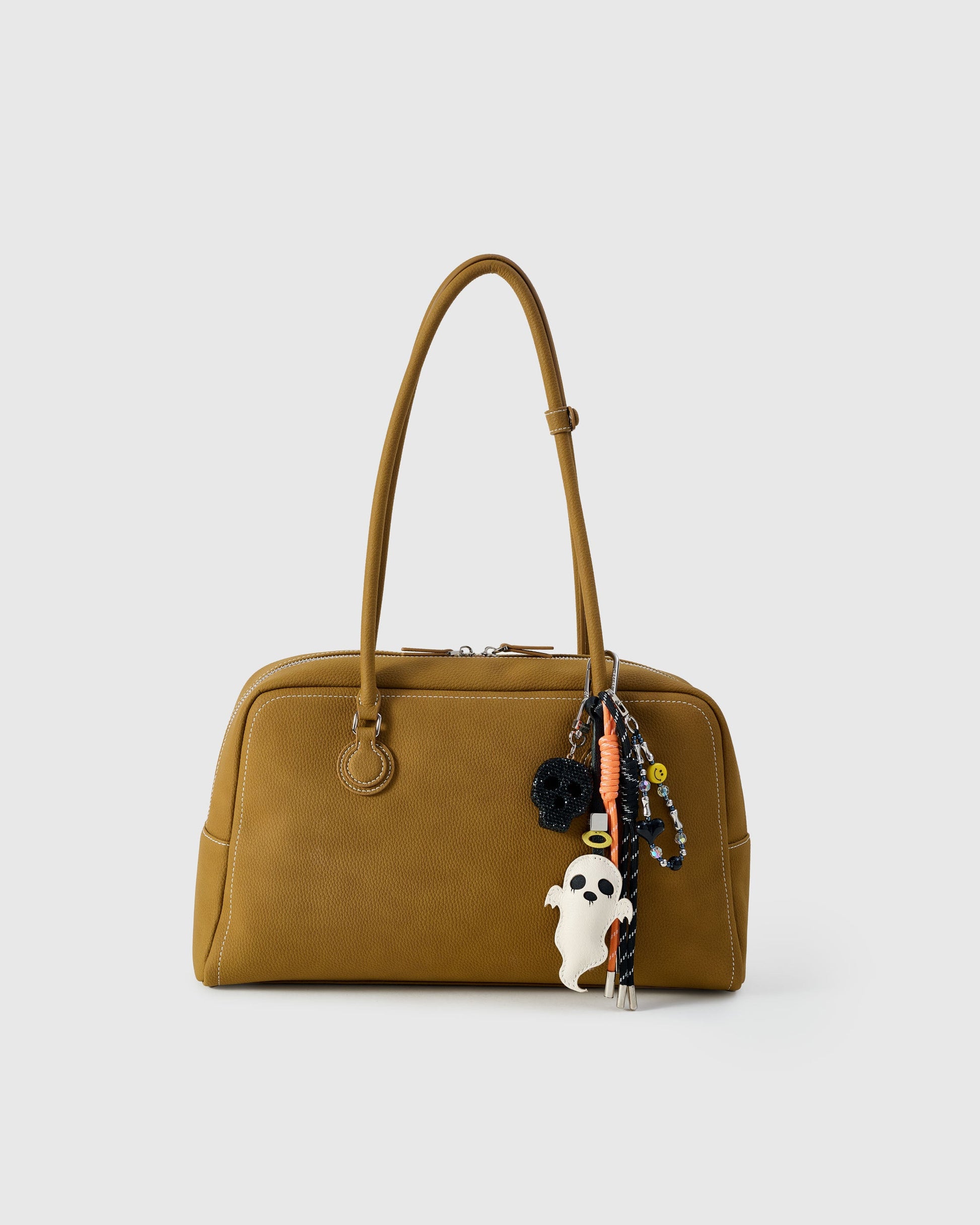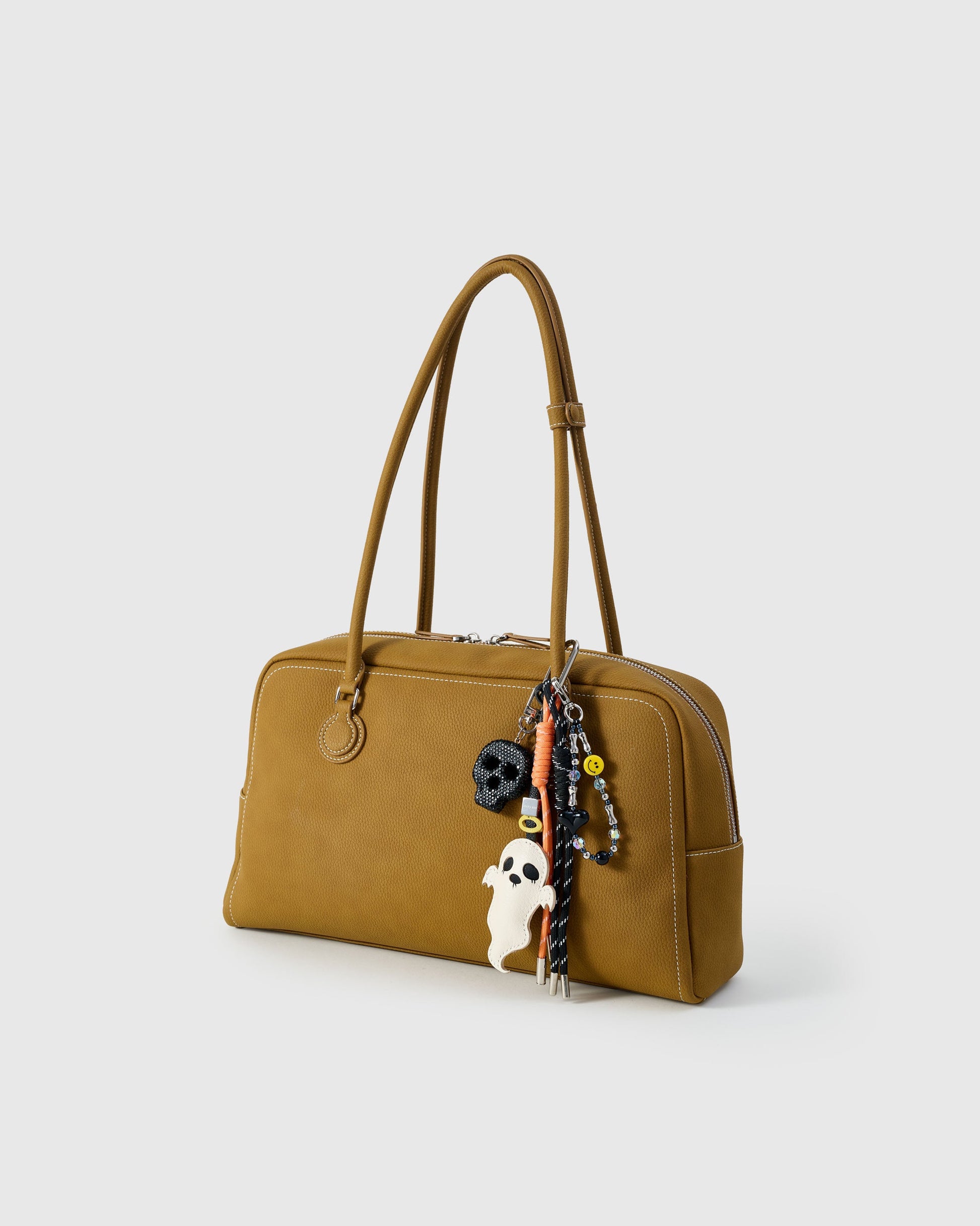 Midnight Halo — Ghost Stack Charm is soft, luminous, and a little mischievous. Designed in premium French Alran sheepskin leather, it brings warm, cute-meets-cool energy to every step. Includes a crystal-paved skull, a smiley-and-bones beaded loop, a glossy wavy mirror, and hand-wrapped paracord tassels in pumpkin orange and midnight black.