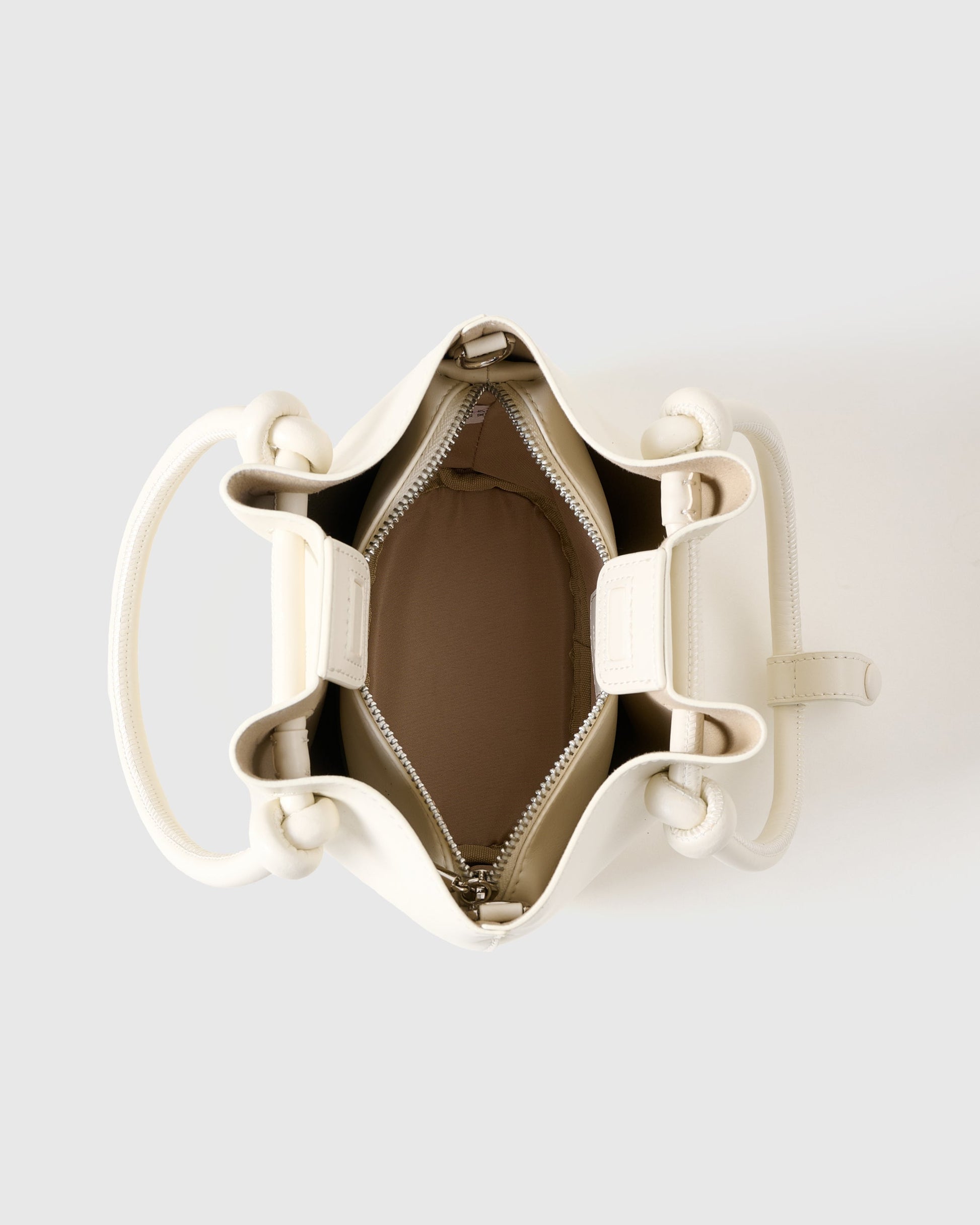 Crafted with a chic, relaxed silhouette, this mini bucket bag is perfect for carrying your essentials in style. Designed with detailed knotted handles and a detachable shoulder strap, it transitions seamlessly from casual outings to elegant evenings.
