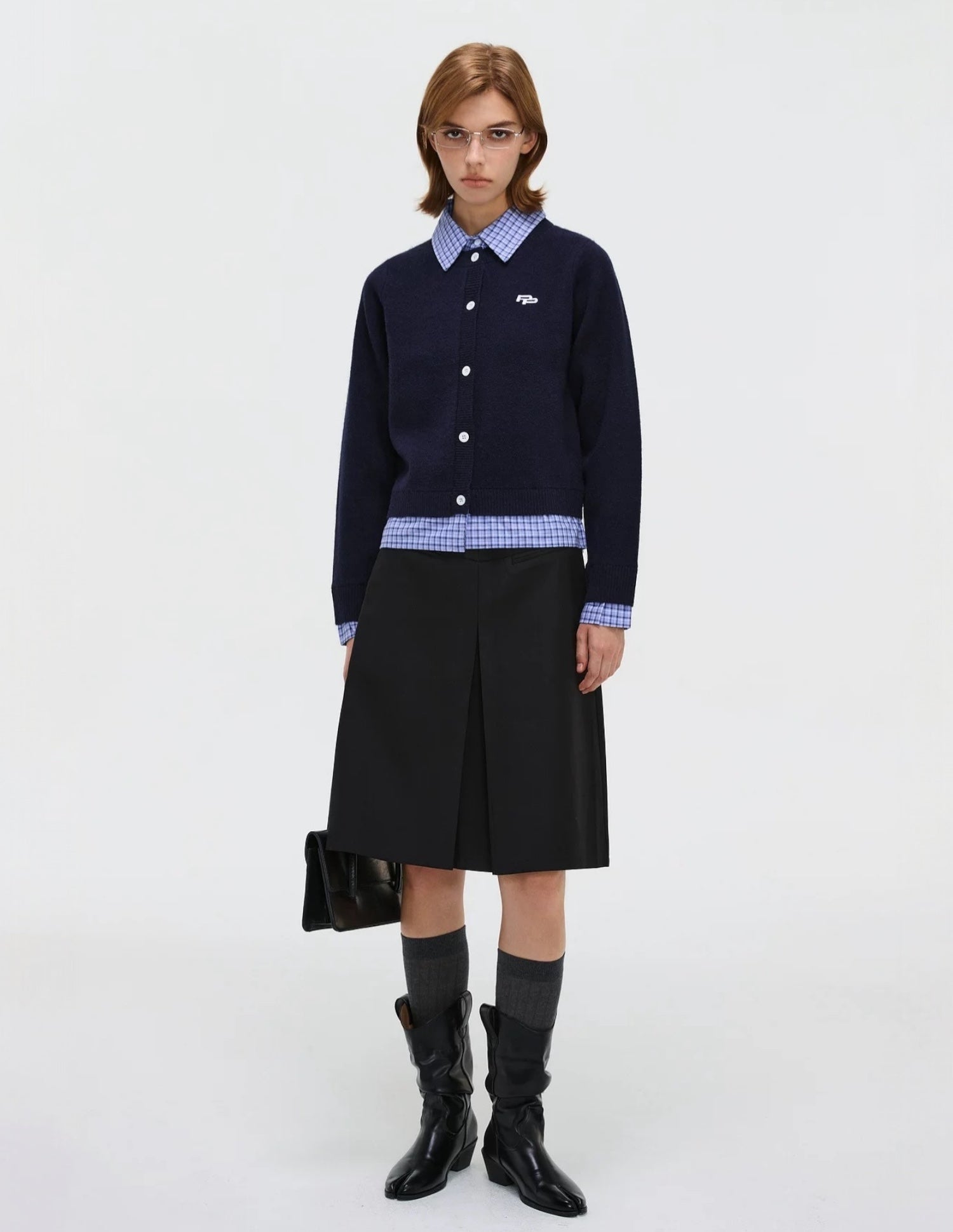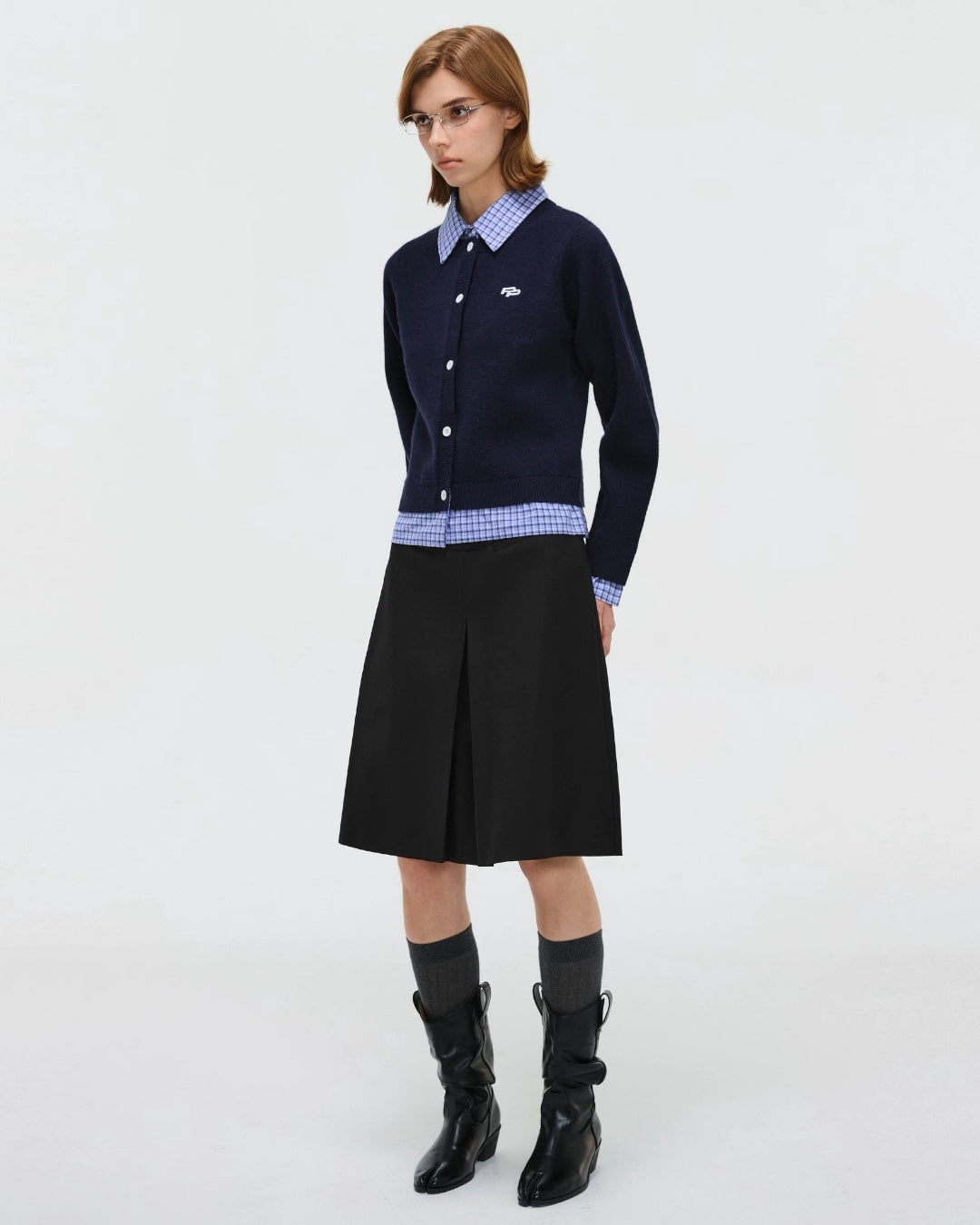 The MIULIN CARDIGAN from STICKY ZOO blends smooth Arctic knit fabric with classic plaid tailoring. Its built-in layered collar and cuff detailing create a crisp, two-piece illusion while maintaining the easy wearability of a single layer.
