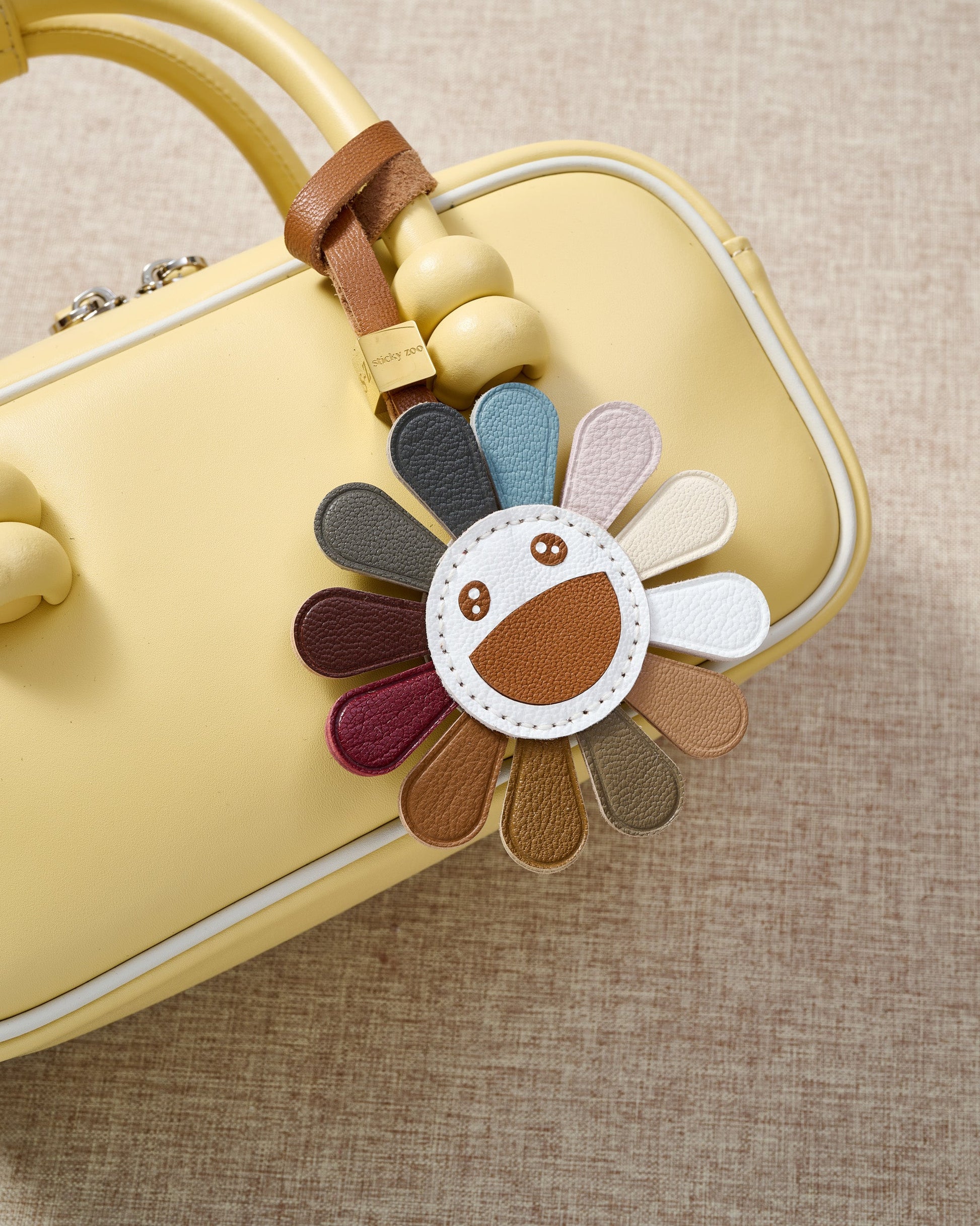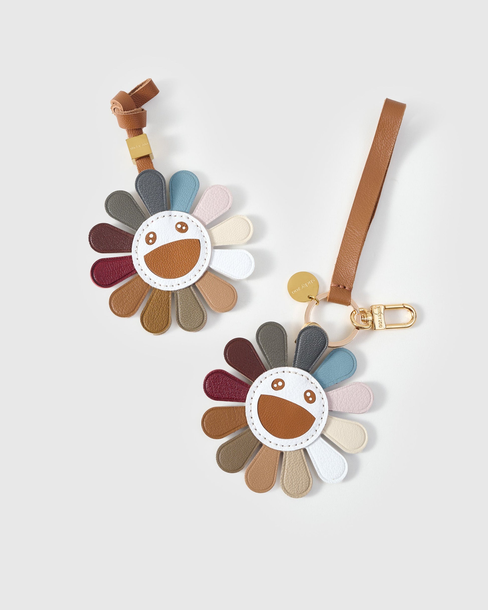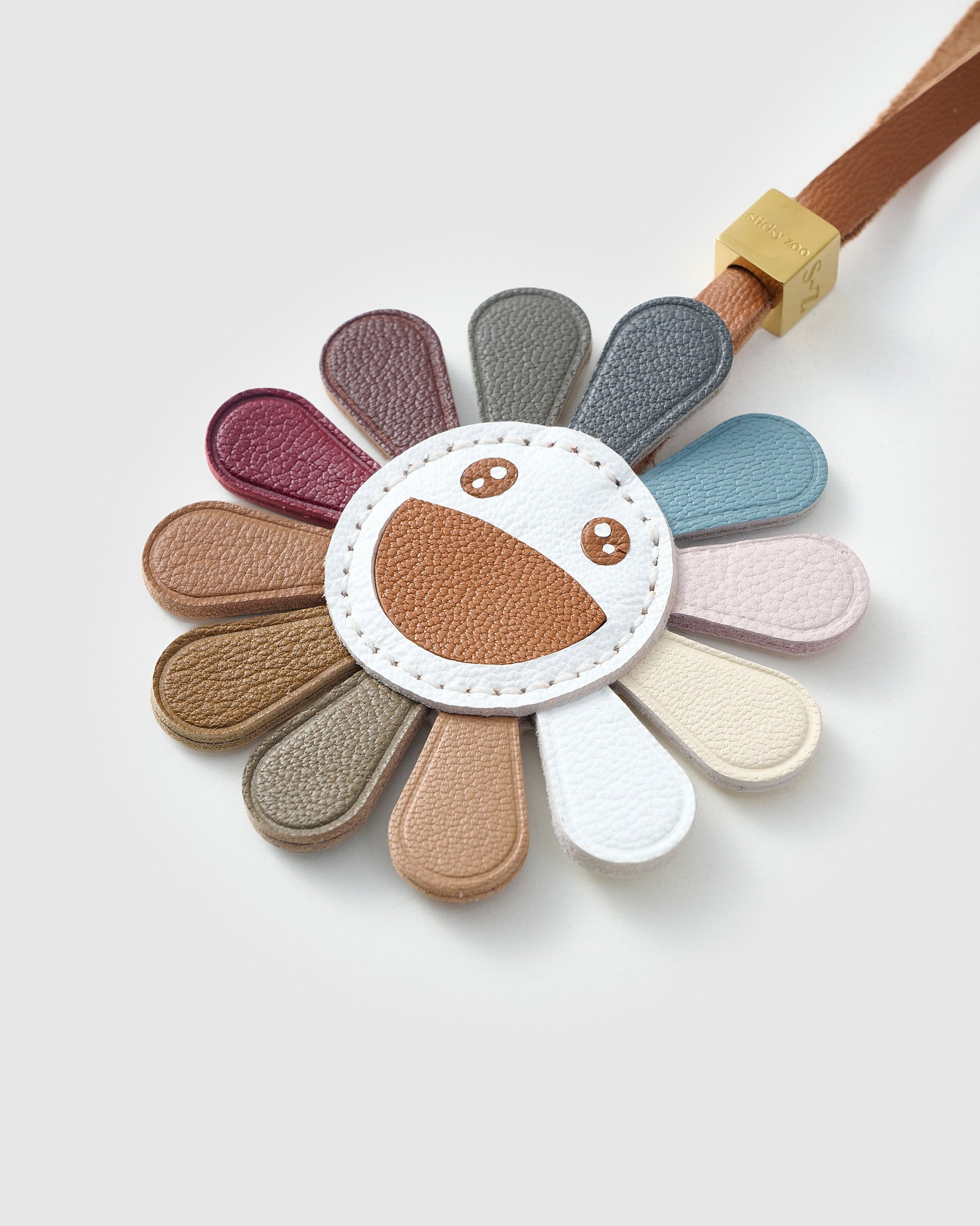 | Hook & Hardware | Polished 18K gold clip engraved with Sticky Zoo® logo; optional leather strap loop with gold cube |