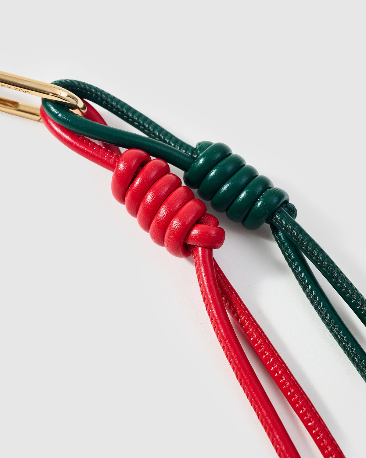 - Holiday red and green leather cords for a festive finish