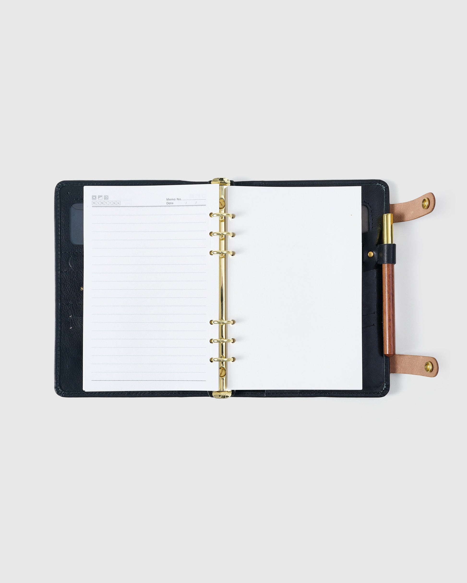 The Pizza notebook blends playful charm with impeccable craftsmanship. Each notebook is skillfully handmade from premium sheepskin and goatskin leather, showcasing a delightfully detailed handcrafted pizza slice charm. The refillable pages are secured by an elegant 18K gold-plated ring mechanism, ensuring both durability and timeless style. A premium matching pen is included, ready to capture every delicious idea. An exclusive pizza-themed page separator helps keep your notes neatly organized.