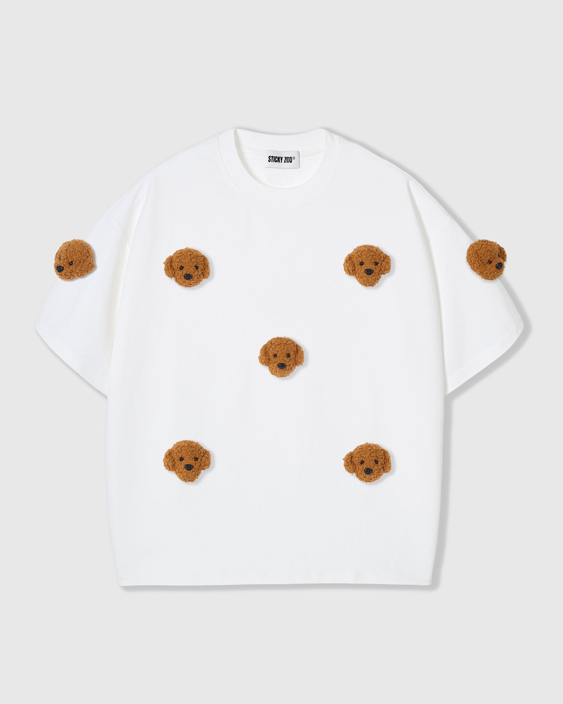 The POODLE PARADE T-SHIRT wraps cheerful character in serious comfort. Crafted from premium 230gsm cool-touch cotton, it drapes with an easy, relaxed feel while the plush poodle faces—each individually handmade and stitched—bring warmth and whimsy to your look. It’s the kind of piece people notice, then smile at.