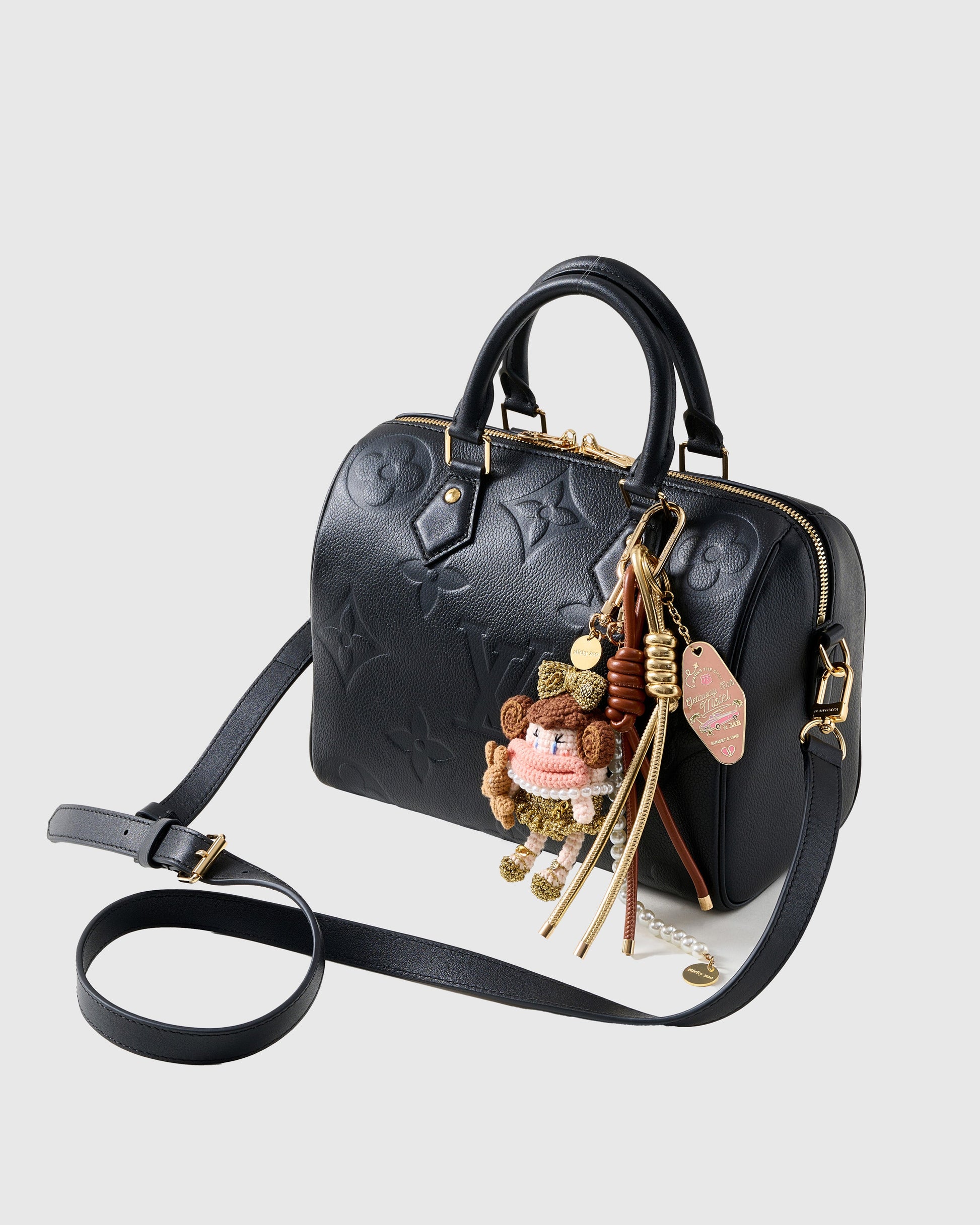Designed to clip onto your bag, belt, or keys, she features hand-wrapped leather tassels, a polished 18K gold-plated clasp, and a charm tag stamped with the Sticky Zoo® logo. But what truly sets her apart? Royal Ridiculous is 100% handmade and takes 7 full days to craft—each detail stitched, wrapped, and assembled by hand.
