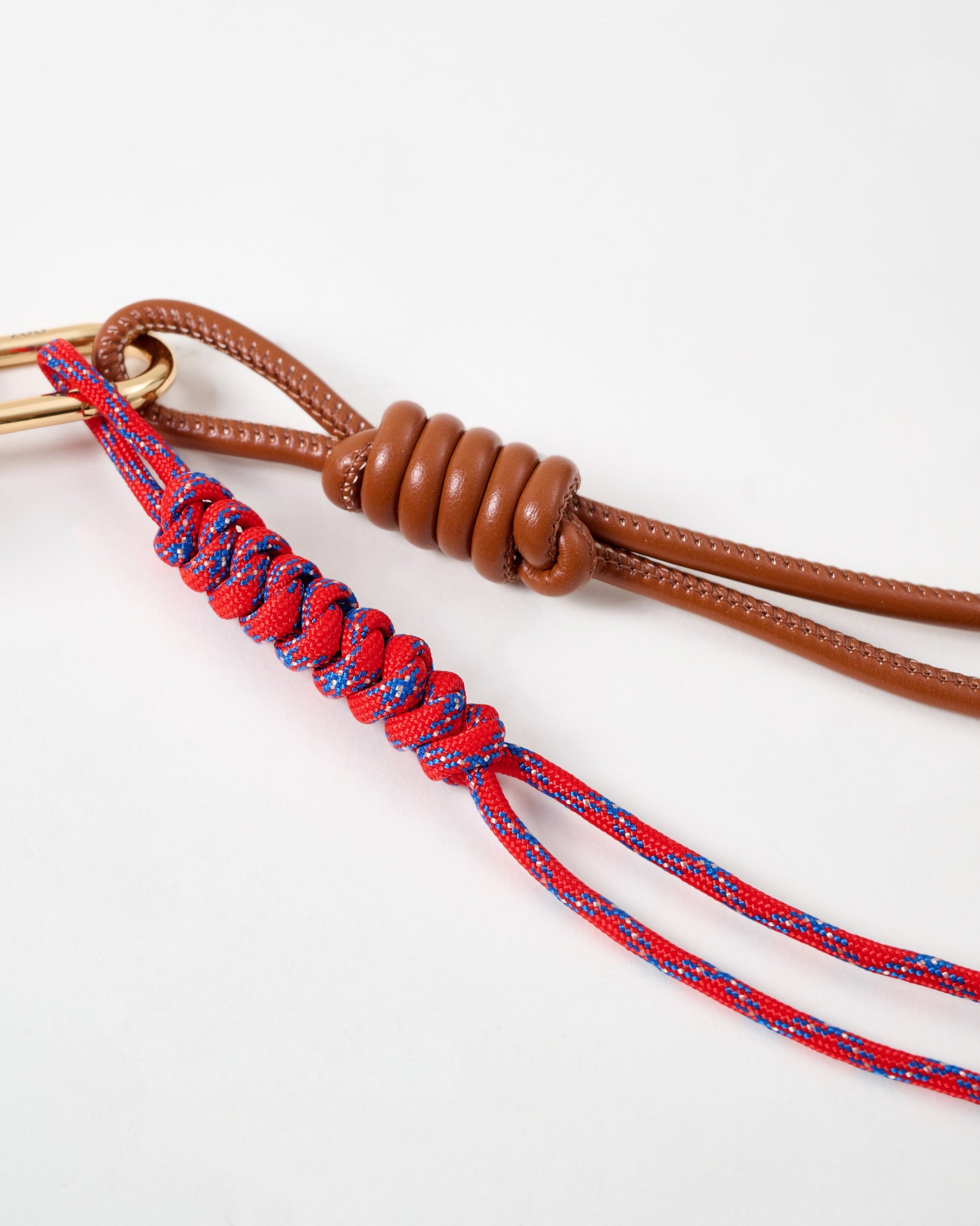 Hand-wrapped leather cords in chestnut and red, polished gold hardware, and our signature engraving make this charm a keepsake for collectors and fashion lovers alike.