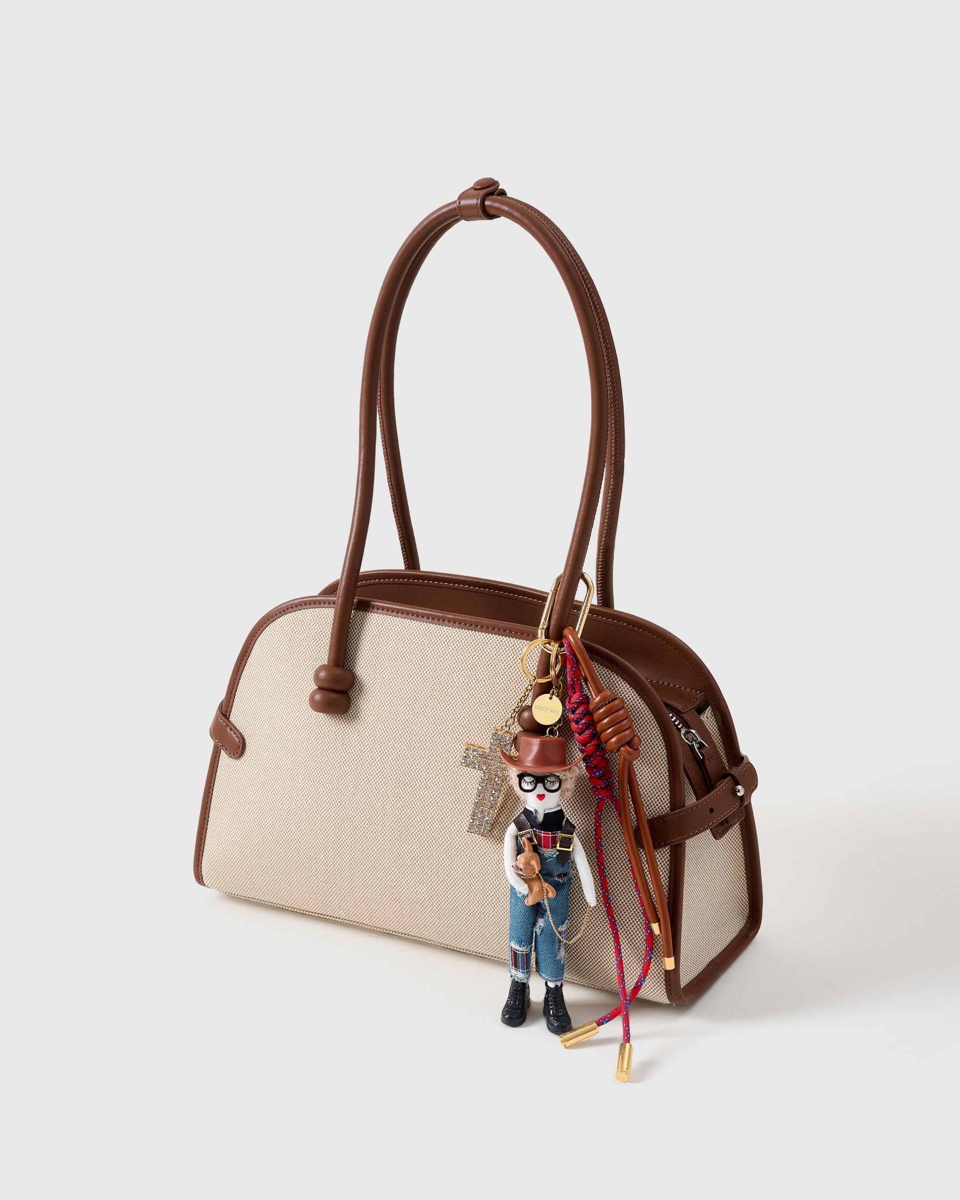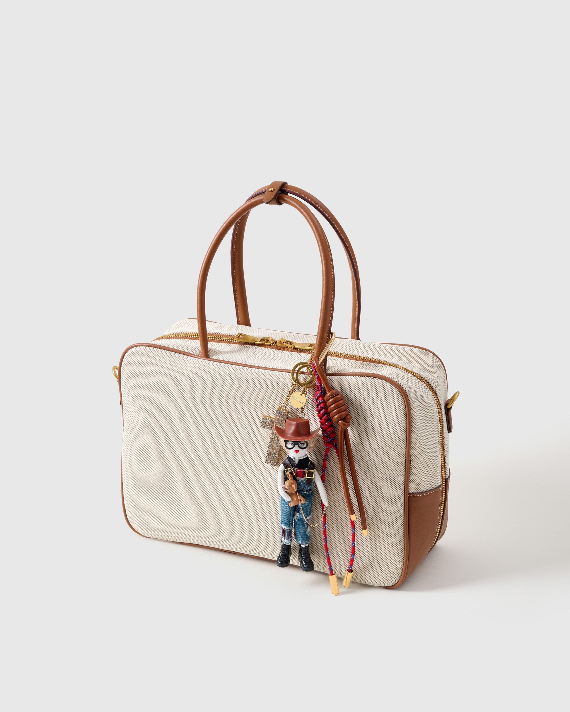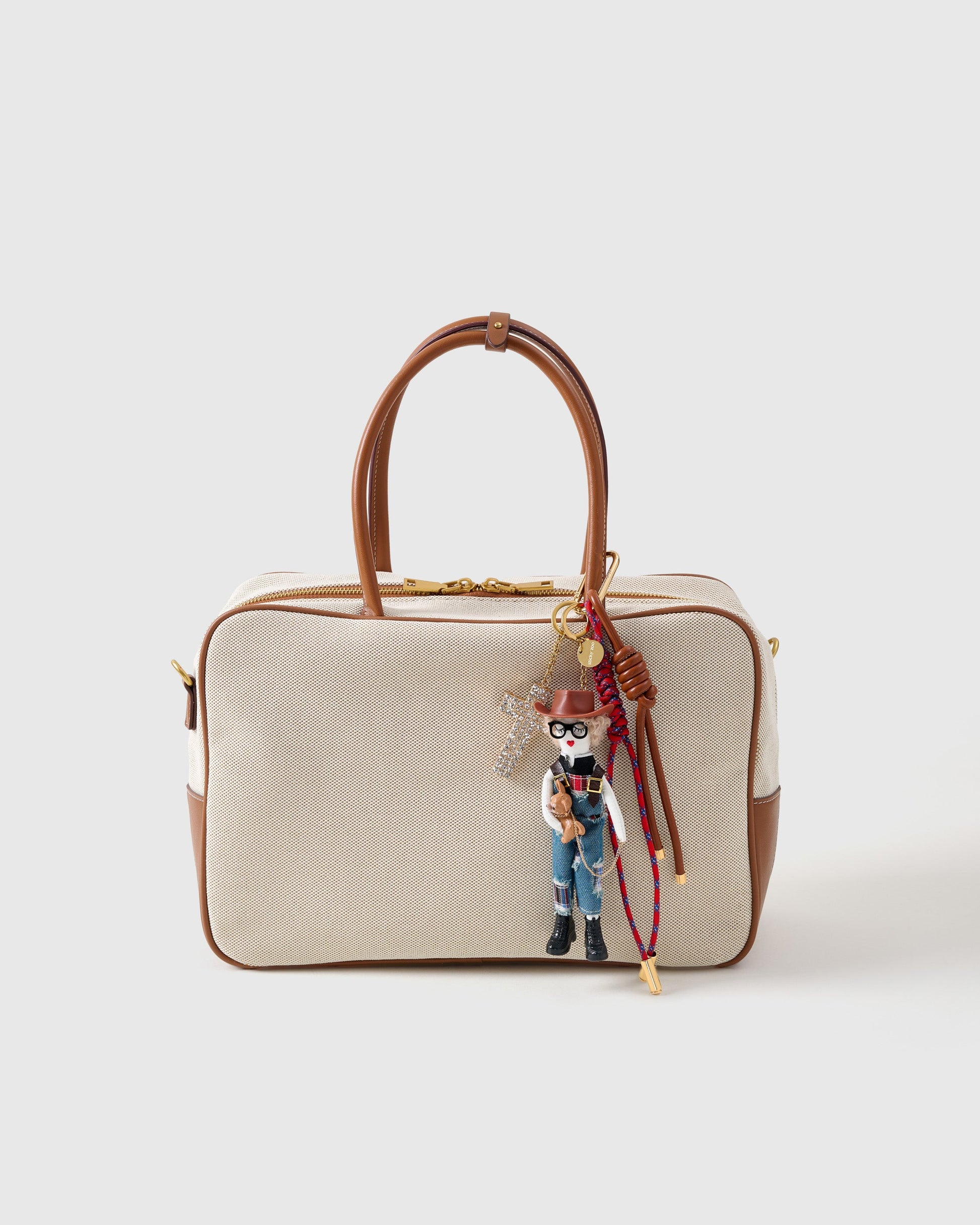 The SAINT BABE & CHIHUAHUA STACK CHARM from STICKY ZOO celebrates individuality with handcrafted flair. Featuring a denim-clad doll with patchwork overalls, mini chihuahua figure, and crystal cross pendant, this limited piece blends playful storytelling with high-fashion craftsmanship.