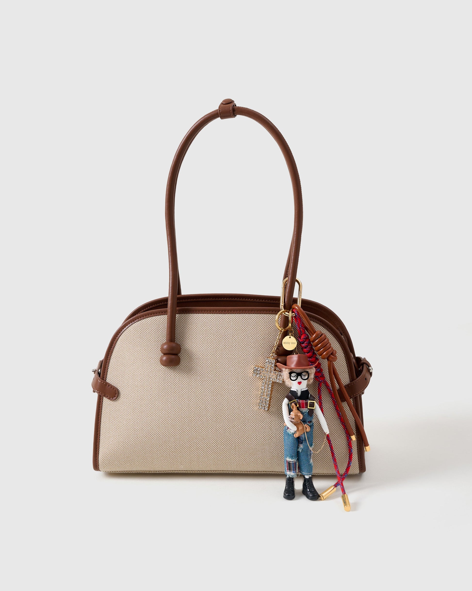 | Materials | Handmade fabric doll; denim patchwork; resin chihuahua; crystal cross pendant; leather cords (chestnut & red); gold hardware |