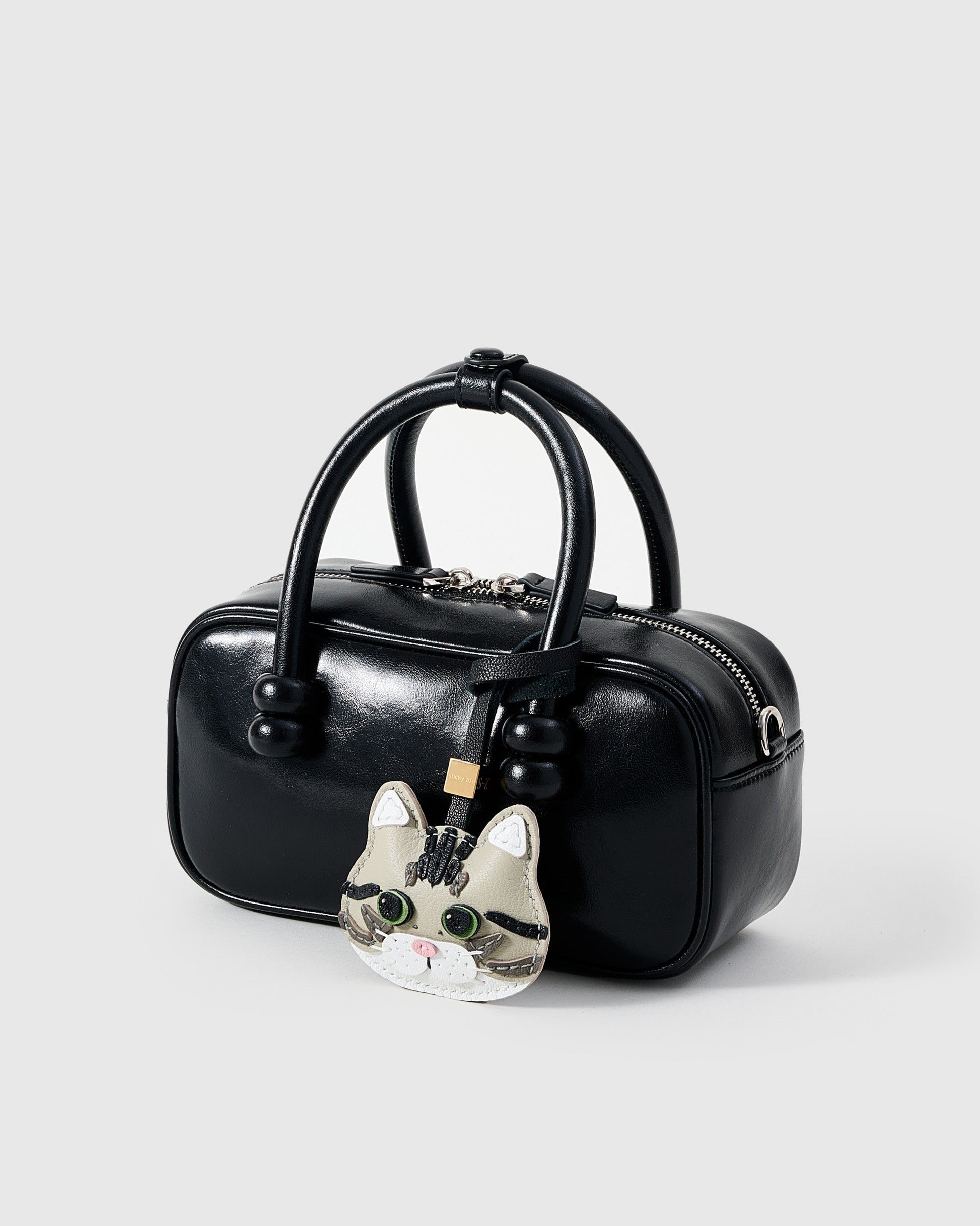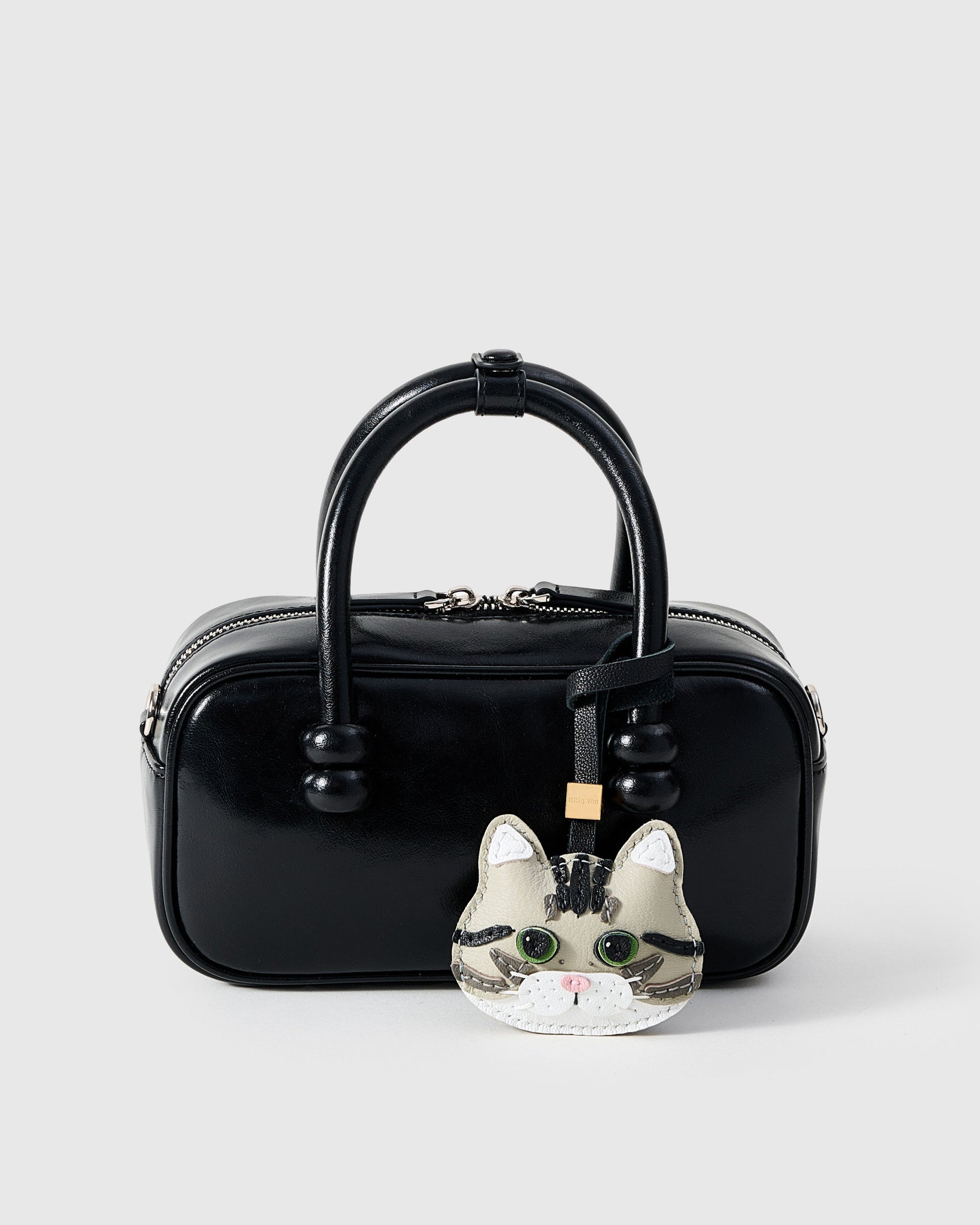 The SILVER TABBY CAT CHARM from STICKY ZOO® pairs French Alran leather with layered appliqué stripes and hand stitching for a lifelike feline design. From bag charm to keychain, it’s a stylish collectible for anyone who loves cats and fine craft.