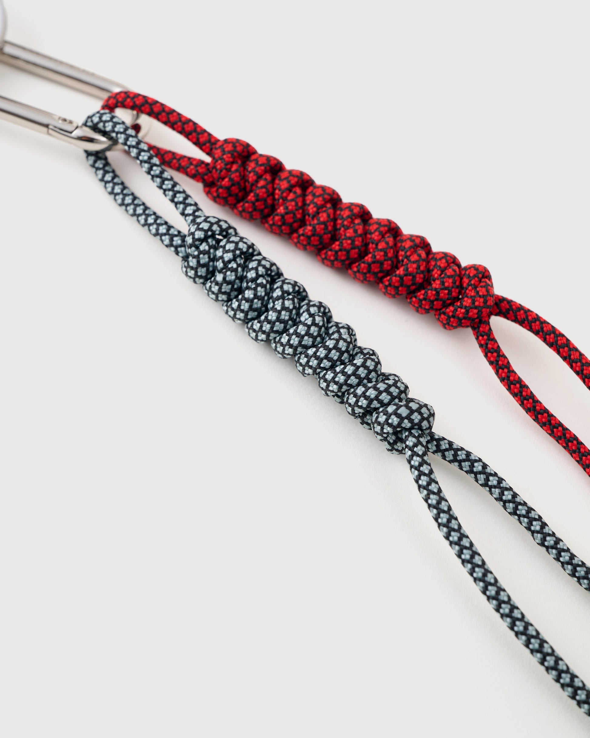 - Dual-tone paracord ropes with metal end caps