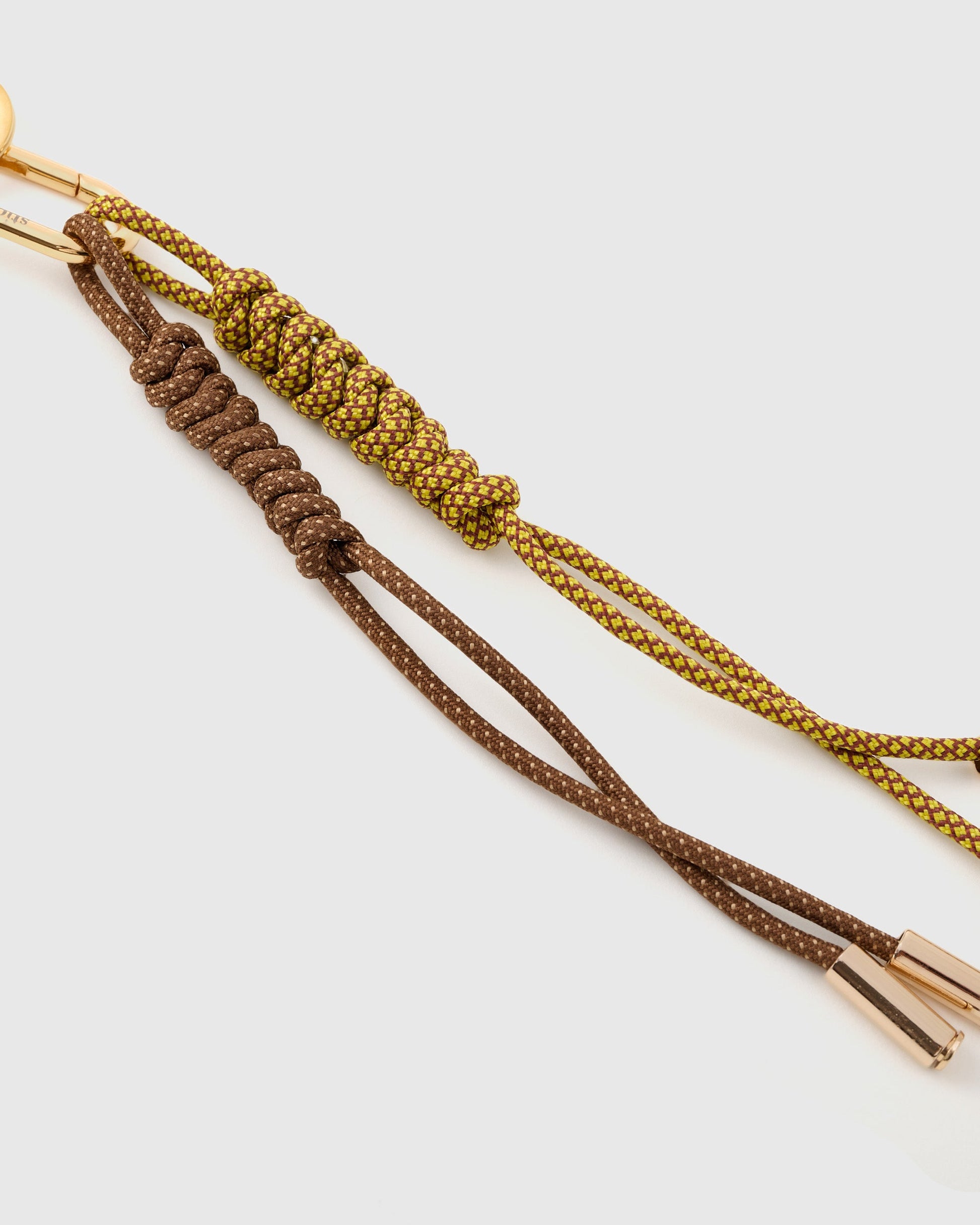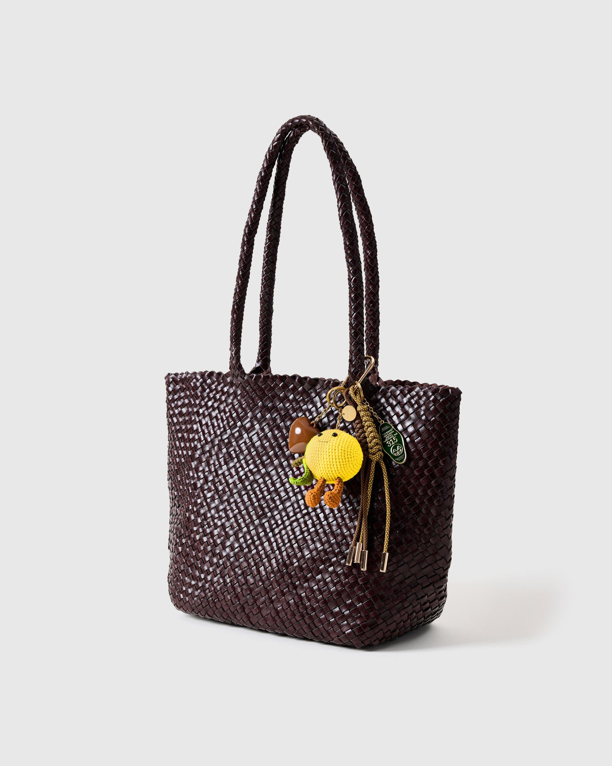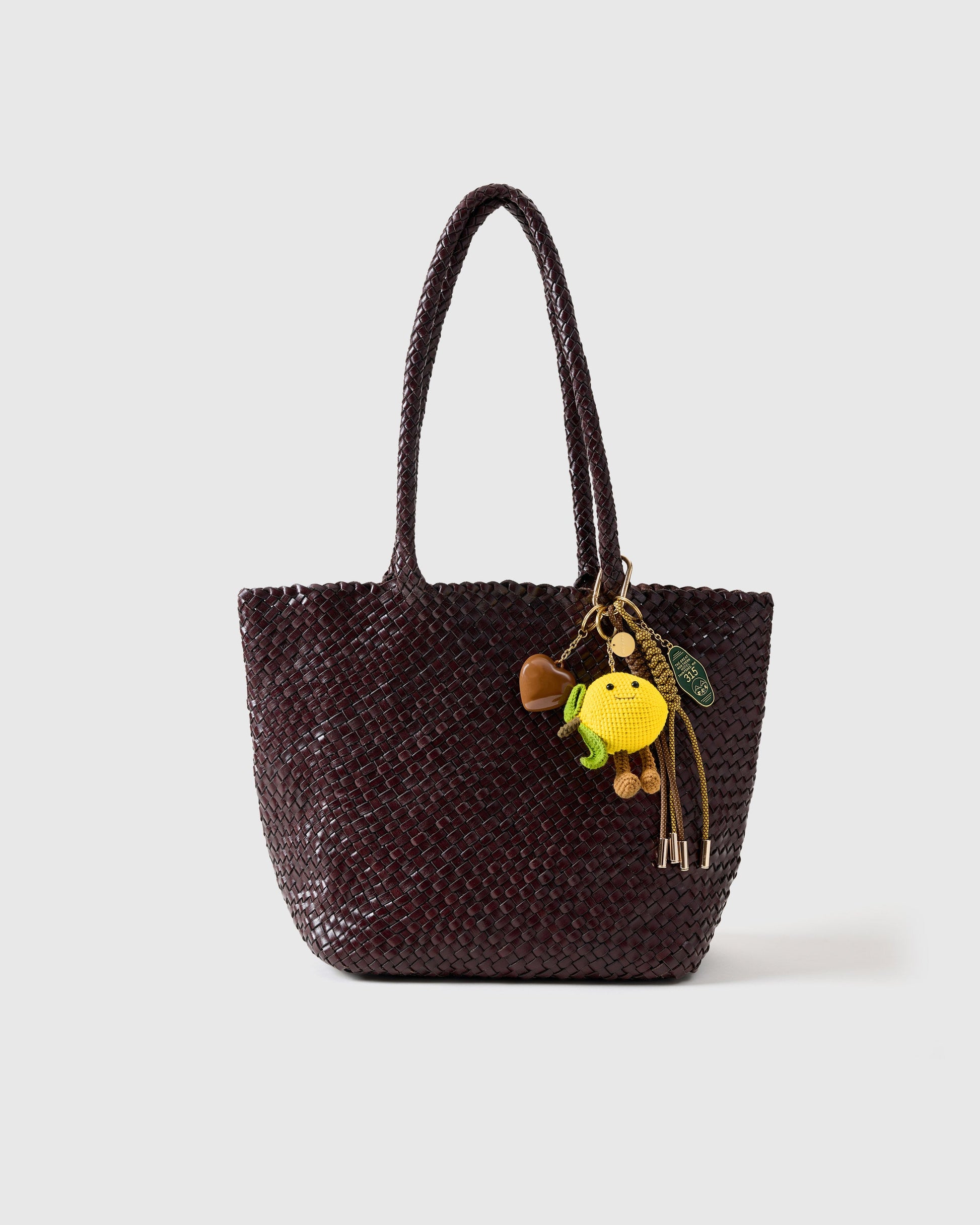 This lemon isn’t just extra—it’s iconic. Sculpted from hand-crocheted yarn with mini legs, leaf, and stitched face, it radiates fruity rebellion. She’s stacked with a glossy chocolate heart charm (bittersweet and shiny), a Room 315 motel tag (vacay energy), and dual-layer braided ropes in lemon zest and espresso brown.