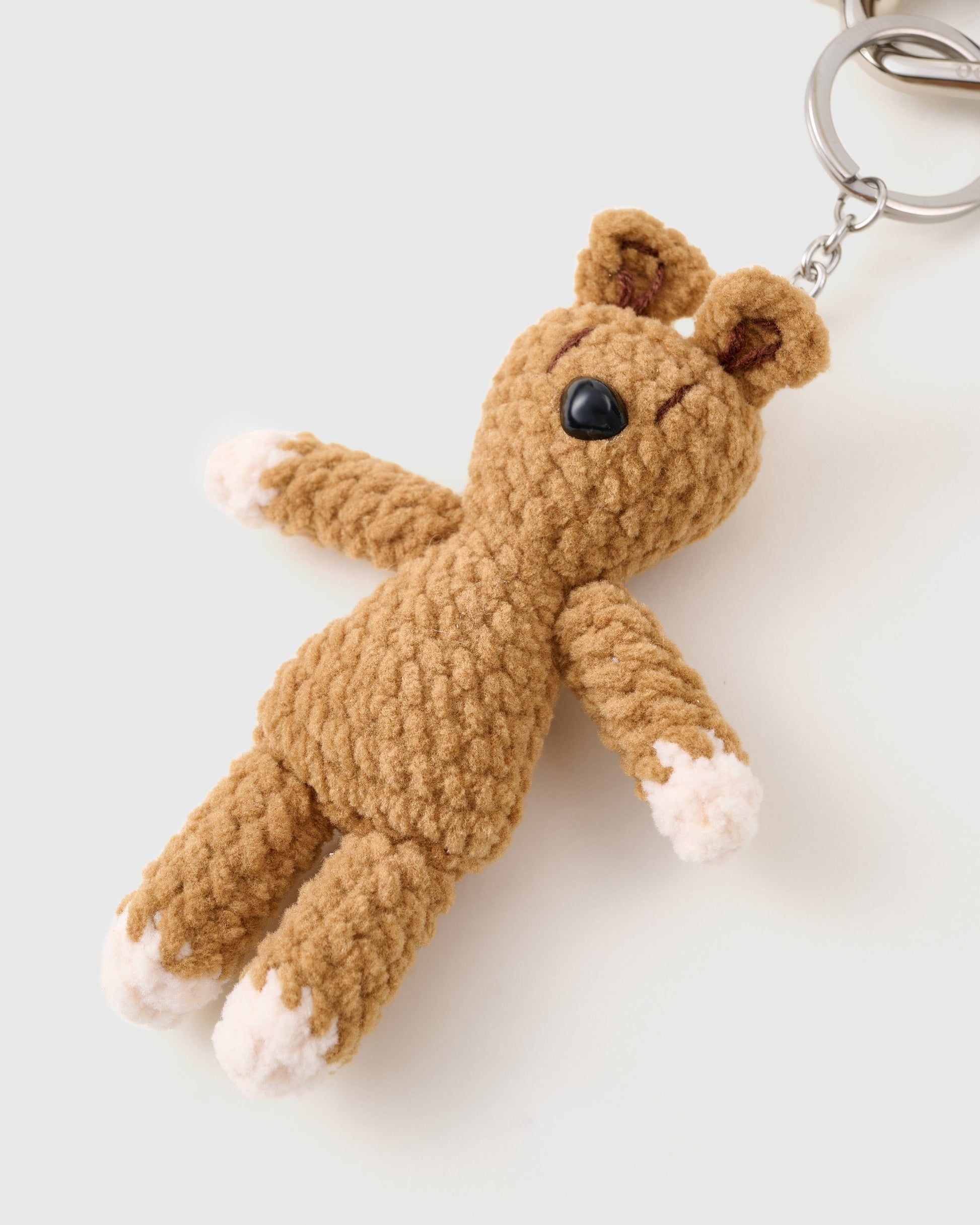 | Materials | Soft yarn plush, resin cassette, metal & acrylic beads, leather, paracord |
