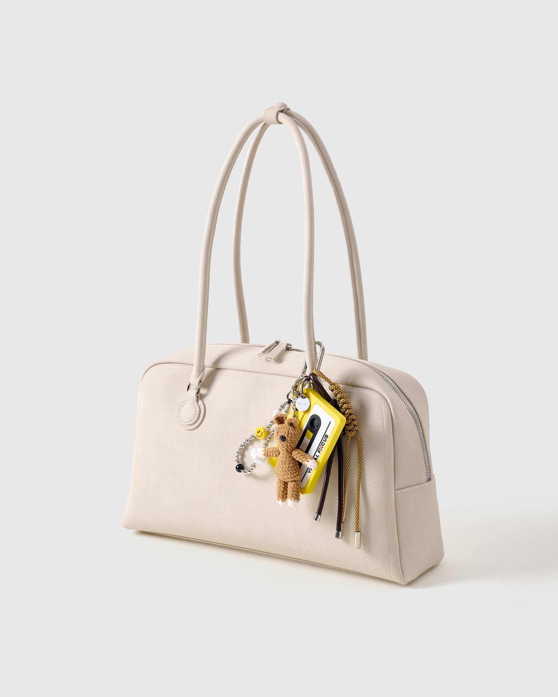 🎶 Meet the CASSETTE TAPE STACK CHARM—your new favorite remix of joy and memory. Built around a mini yellow recorder-style cassette (yes, the tape rolls!), a crocheted sleepy bear plush, and a metallic smiley bead chain, this one sings a retro tune. Paired with dual-tone leather and paracord ropes, it’s your bag’s backstage pass to good vibes.