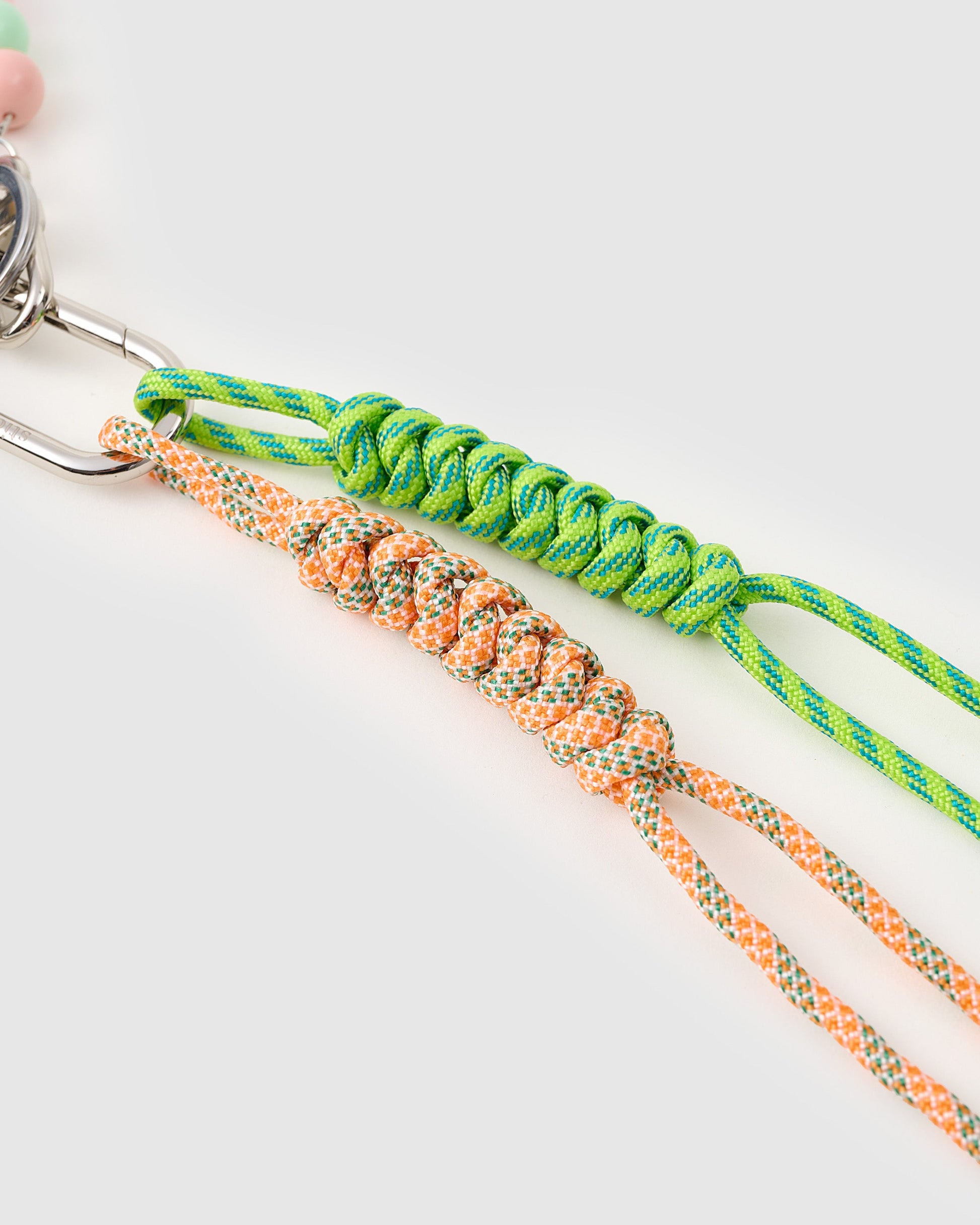 📼 Meet the CASSETTE TAPE STACK CHARM—your pocket-sized memory lane. At the heart is a pastel boombox cassette charm with speaker-like tape reels and record/play button details. Paired with a basketball cat fingerboard, rainbow beaded loop, and dual paracord ropes in green and orange pop—we’re talking full blast personality with max nostalgia.