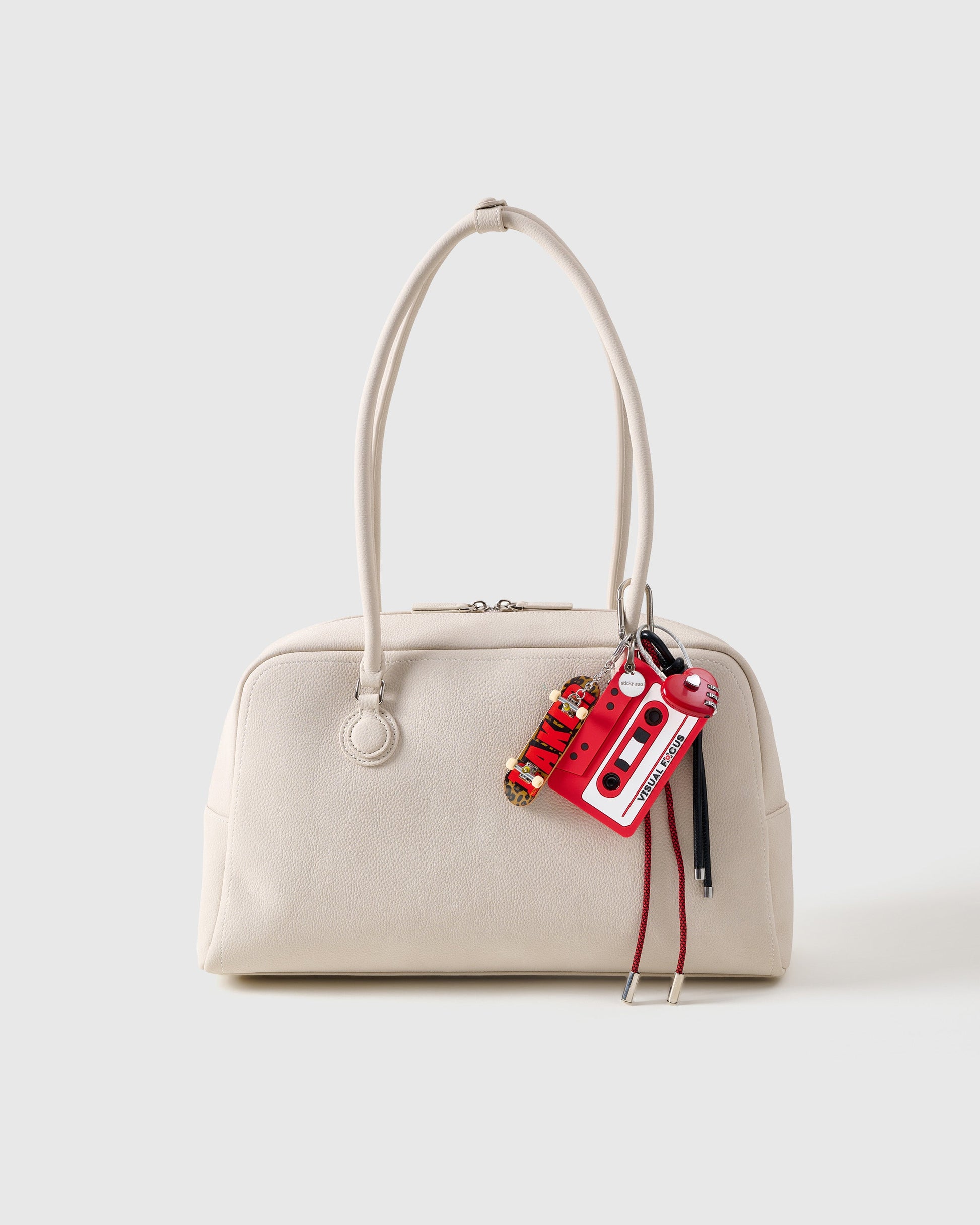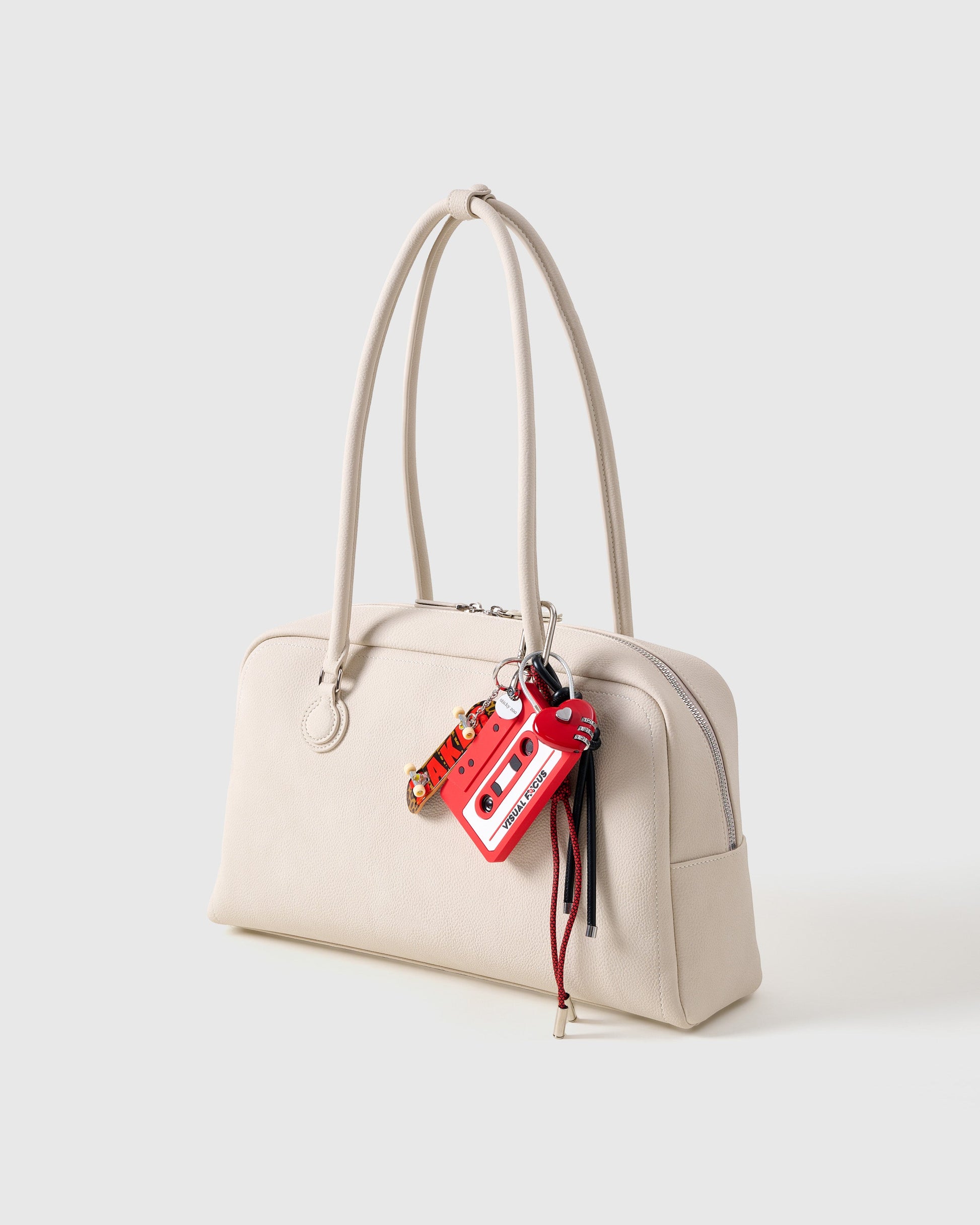 • Materials: Cassette charm, crochet plush, metal beads, leather, paracord