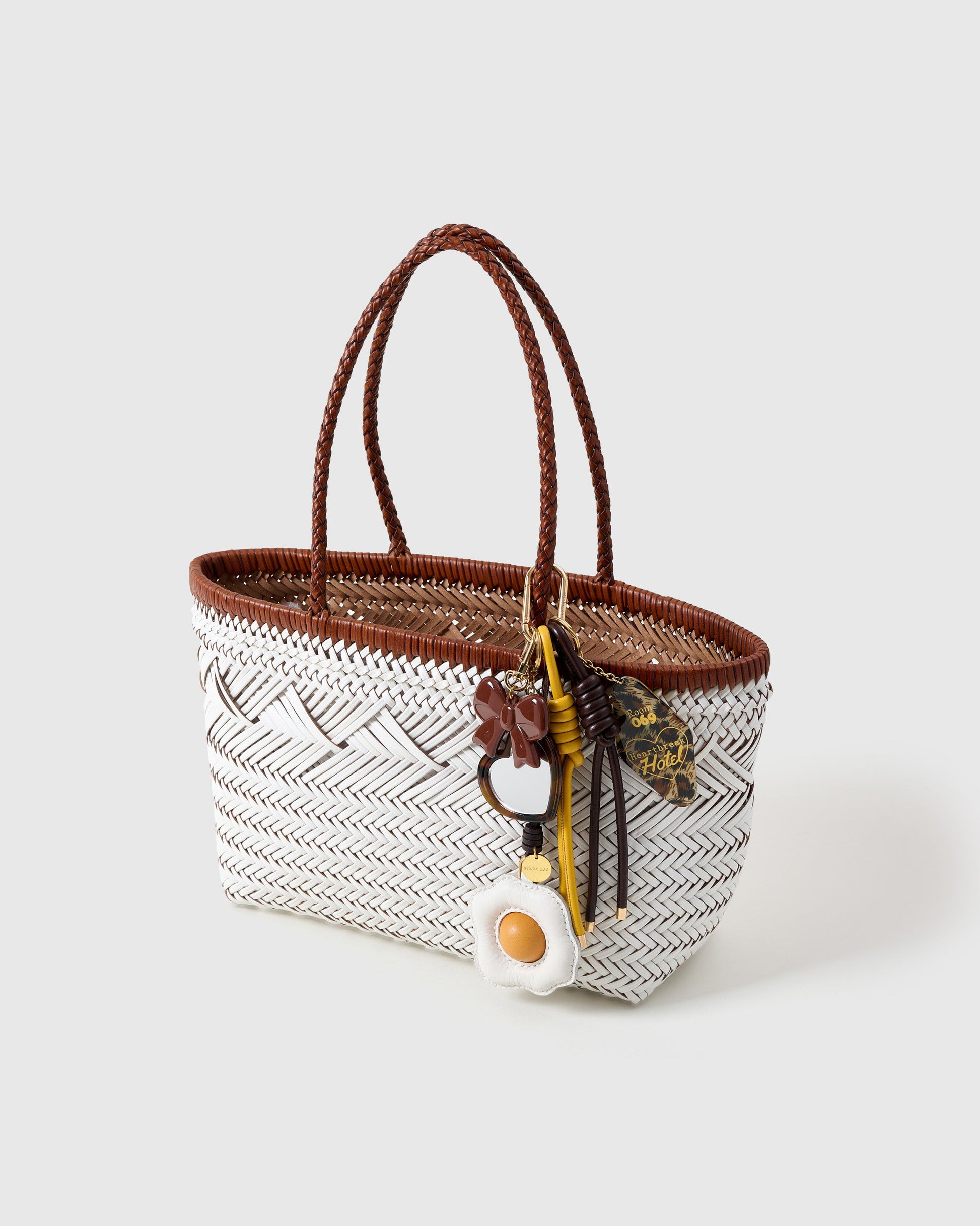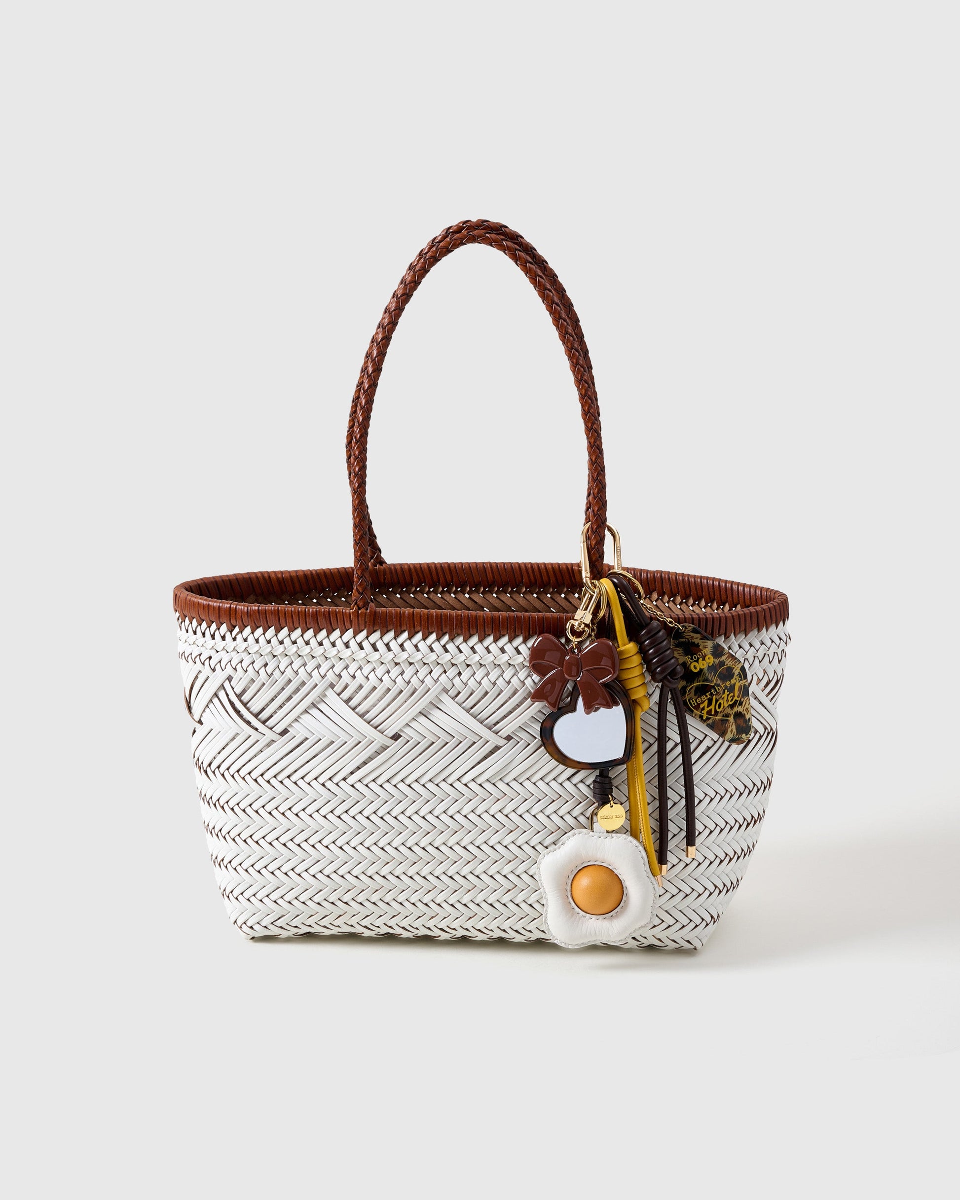 Finished with 18K gold-plated hardware and hand-wrapped leather cords, this set was made to flirt with every tote, basket, and shoulder bag in your rotation. The egg is fully handmade and takes 5 days to complete, so no two are ever exactly alike.