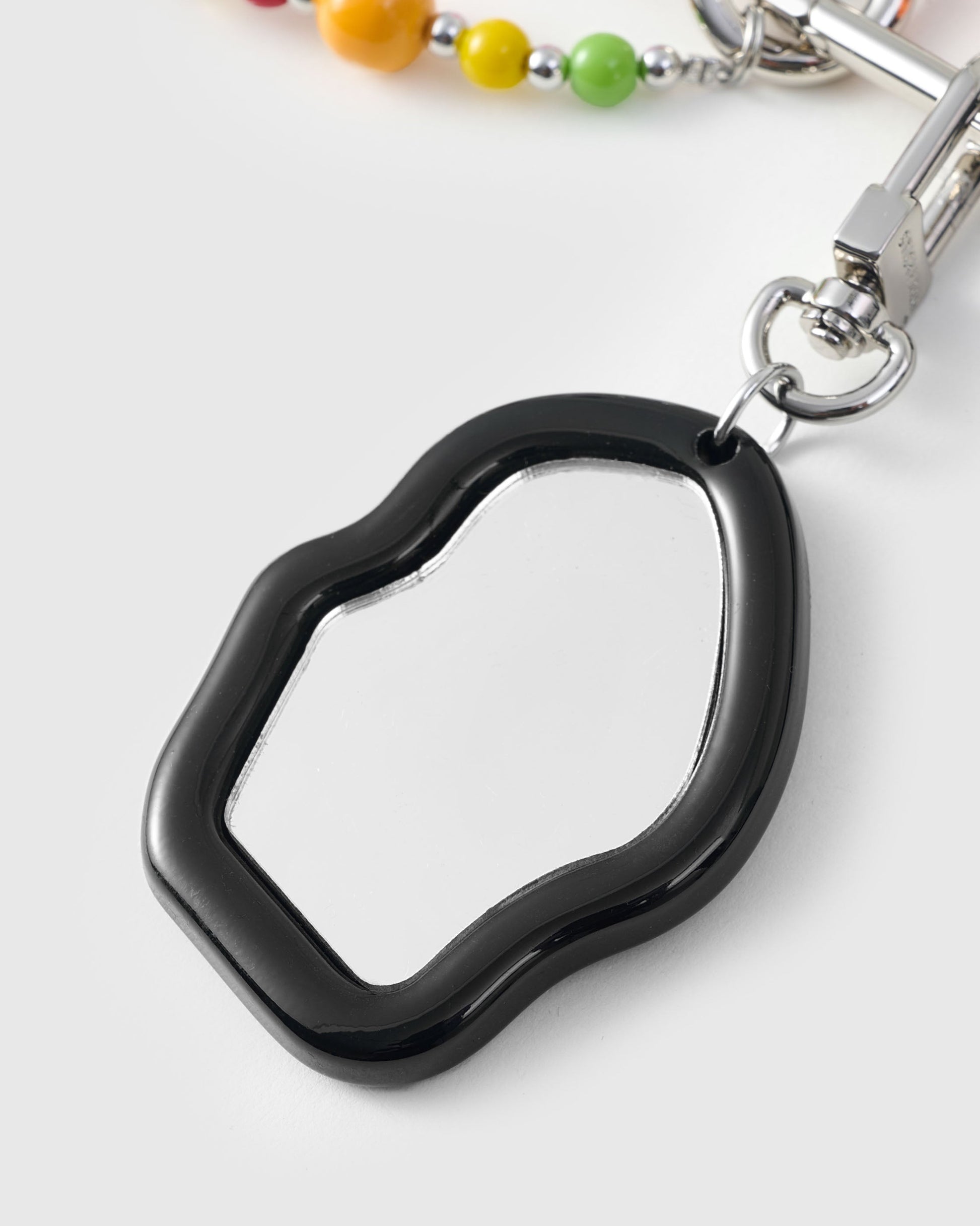 SUSUWATARI STACK CHARM is built for compliments. Layered from French Alran sheepskin, it swings with a glossy micro-mirror, a strand of rainbow beads, and hand-wrapped paracord tassels that move as you do. Clipped with engraved stainless-steel hardware, it’s a pocket-sized statement you’ll reach for every day.
