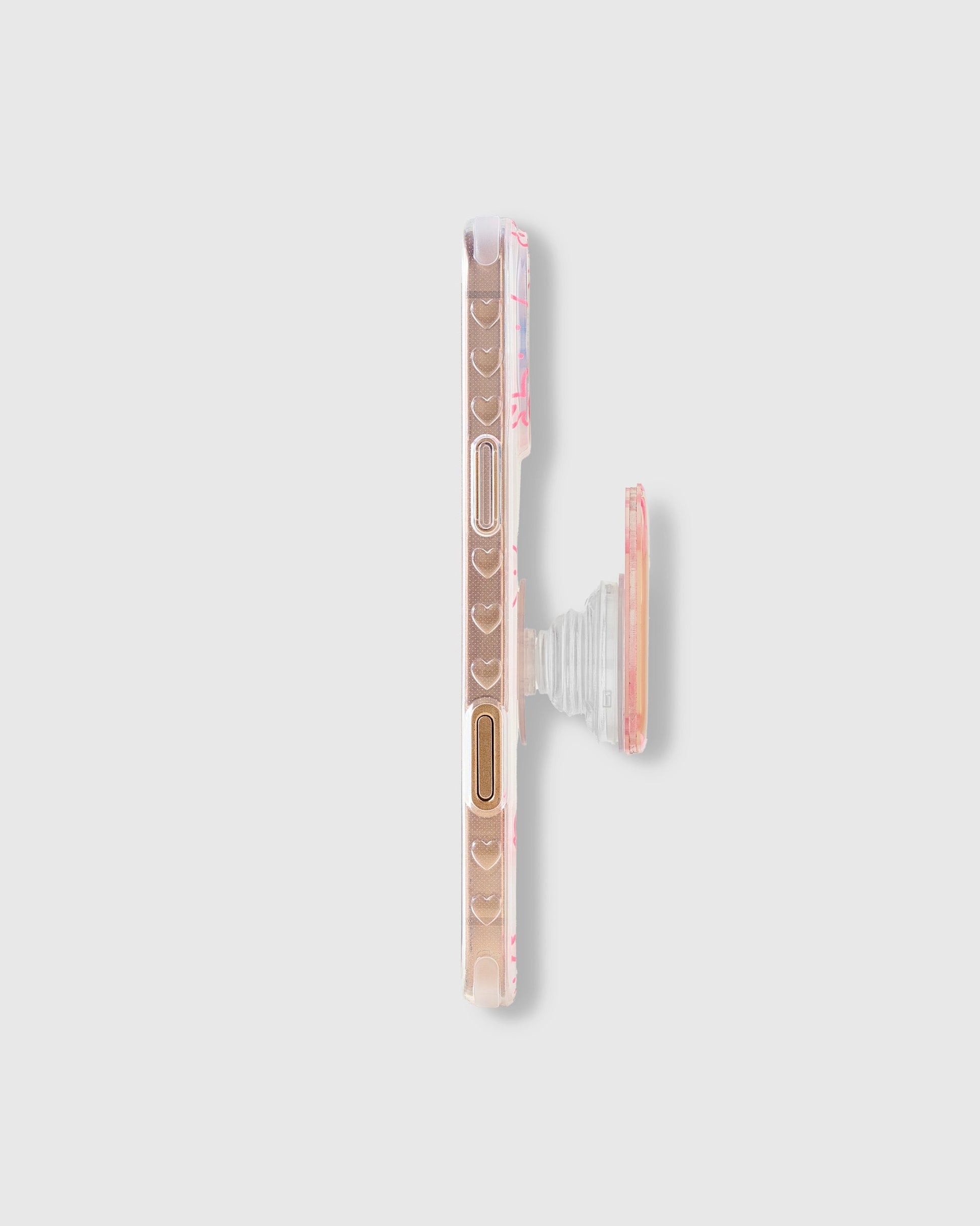 The SWEET STRAWBERRIES CASE from Sticky Zoo® is a playful delight for fruit lovers. Covered in hand-drawn strawberry prints, it features a raised 3D strawberry shopping bag grip that doubles as a stand. Built with a rigid polycarbonate back, TPU bumper, microfiber lining, and a Polished stainless-steel camera ring engraved with Sticky Zoo® logo, it’s slim, durable, and MagSafe compatible for seamless charging and accessories.
