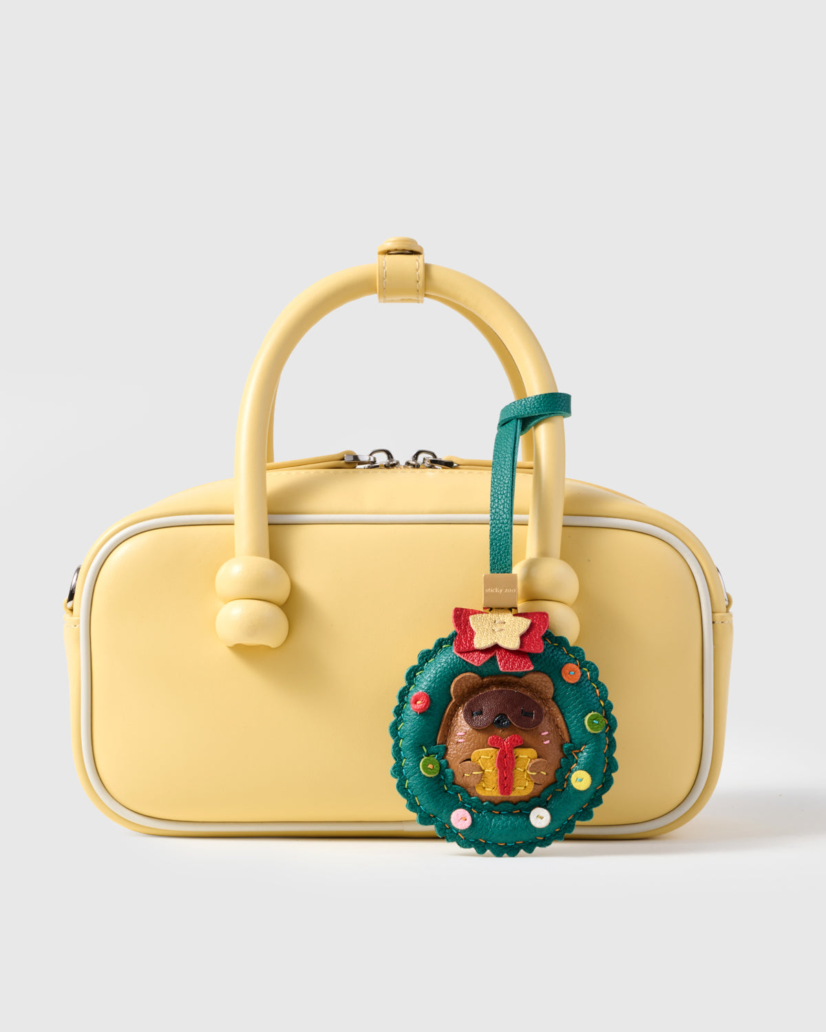 The HOLIDAY BEAVER CHARM from STICKY ZOO® celebrates the season’s craftsmanship and playfulness. Handmade from French Alran leather with intricate layering and festive stitching, it transforms from leather bag charm to keychain in seconds—a small, joy-filled piece that brightens any winter look.