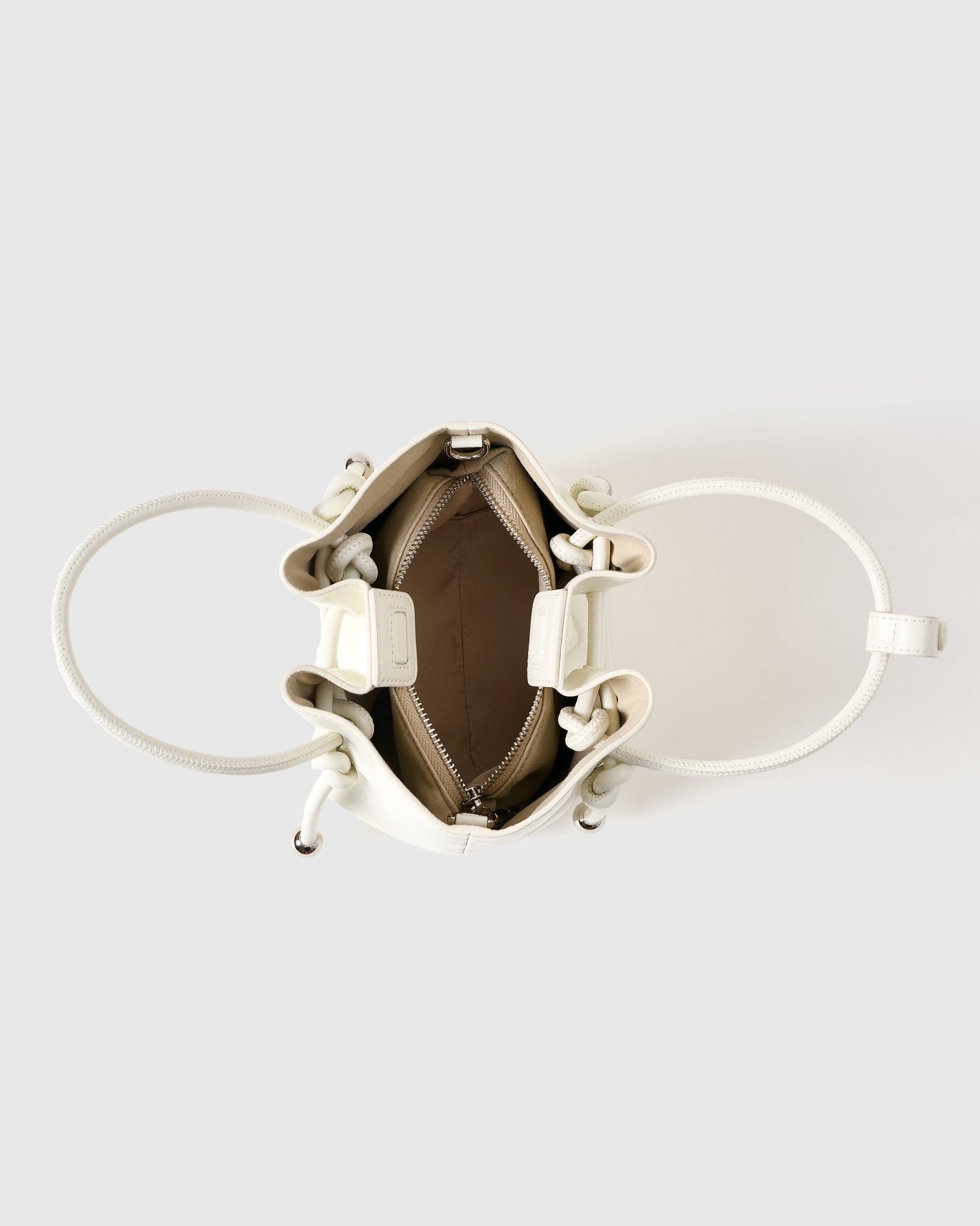 THE SOHO VEGAN LEATHER MINI TOTE is bold, chic, and confidently stylish. Crafted from premium vegan leather with a luxurious feel, its signature drawstring detail with polished stainless steel accents adds a playful twist to classic sophistication. Available in two delicate shades—soft cream and elegant ivory—this mini tote includes an adjustable, detachable long strap for versatile, hands-free wear.