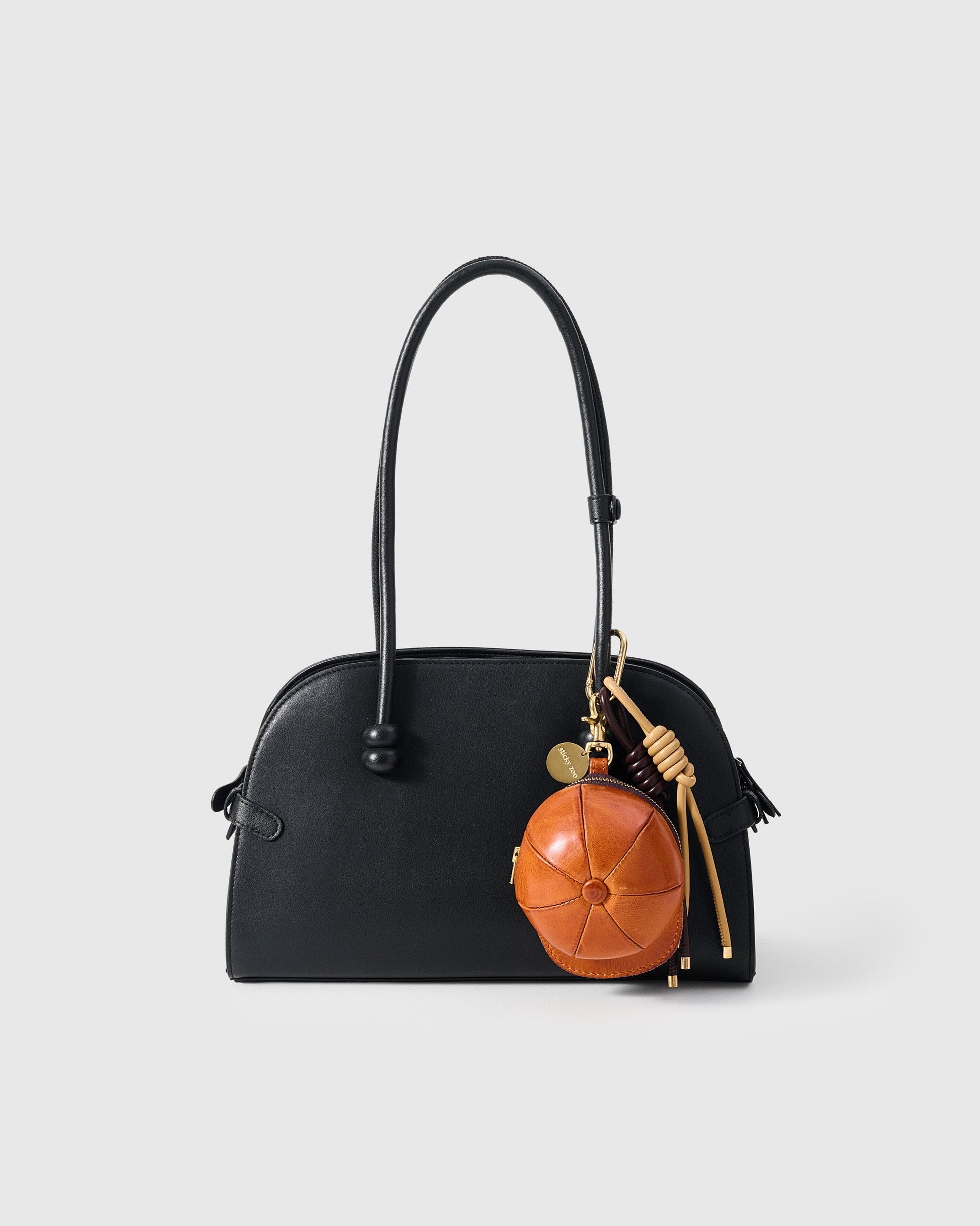 The VINTAGE CAP MINI POCKET STACK CHARM from Sticky Zoo® blends small-batch craftsmanship with nostalgic flair. Hand-assembled with a panel-stitched French Alran leather mini cap and dual-tone leather cords, it layers effortlessly on handbags, keys, camera straps, and weekender totes.