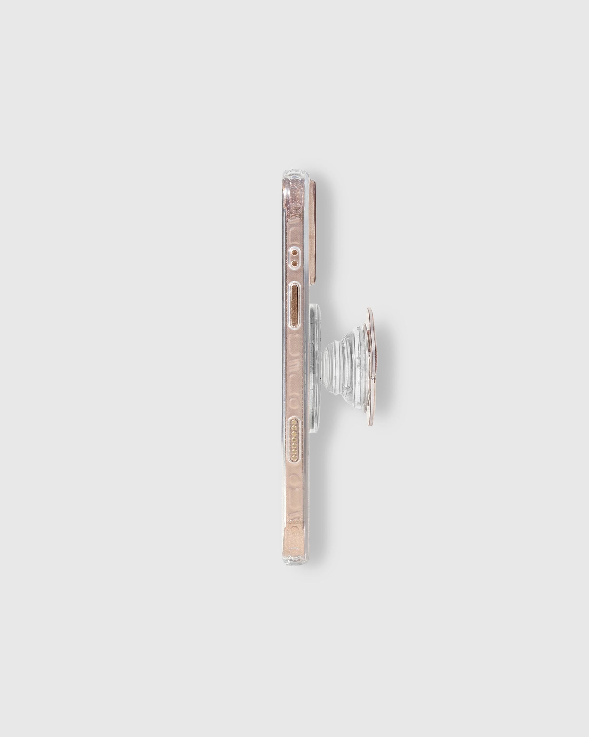 It features a soft blush grid backdrop and a floppy-eared pup in flying goggles—centered like the sticker you’d put on your notebook in middle school. The clear frame wraps around all sides while keeping the design clean and breathable. And the best part? It comes with a matching 3D pop-out grip, shaped like the pup’s face for extra hold, extra cuteness, and extra charm.