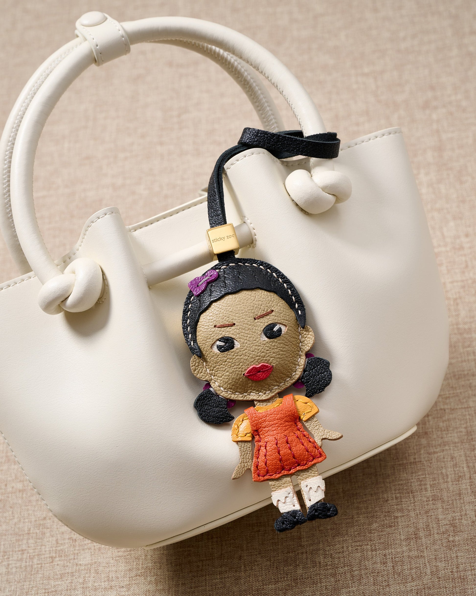 The YOUNG-HEE CHARM channels playful fashion energy, embodying an effortlessly chic vibe. Handmade with vibrant colors and detailed stitching, Young-Hee adds a pop of character to any bag, keychain, or accessory.